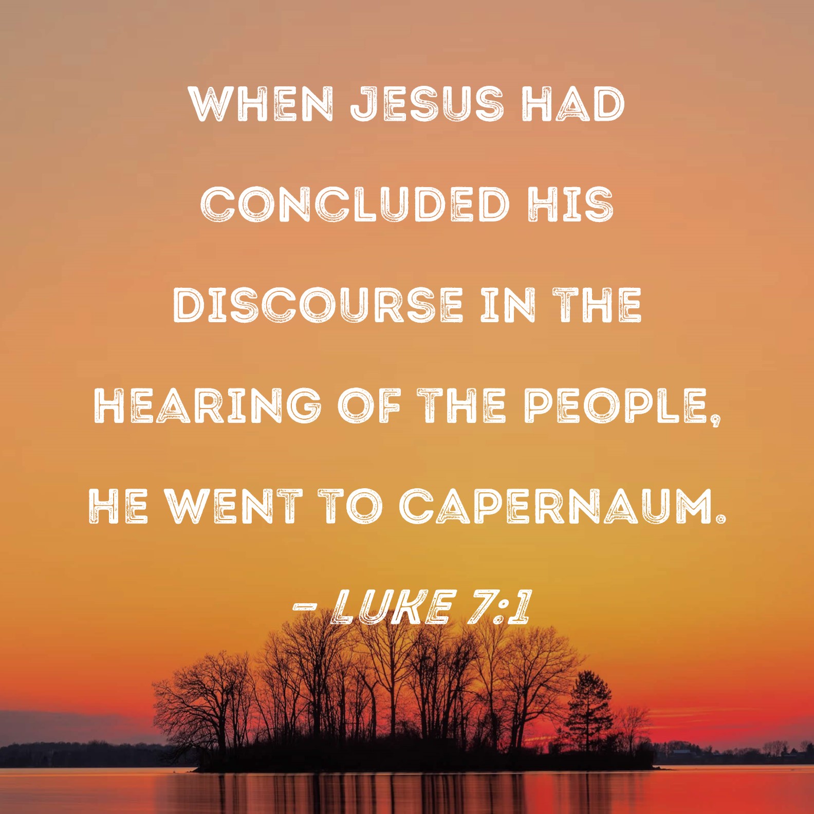 Luke 7:1 When Jesus had concluded His discourse in the hearing of the people, He went to Capernaum.