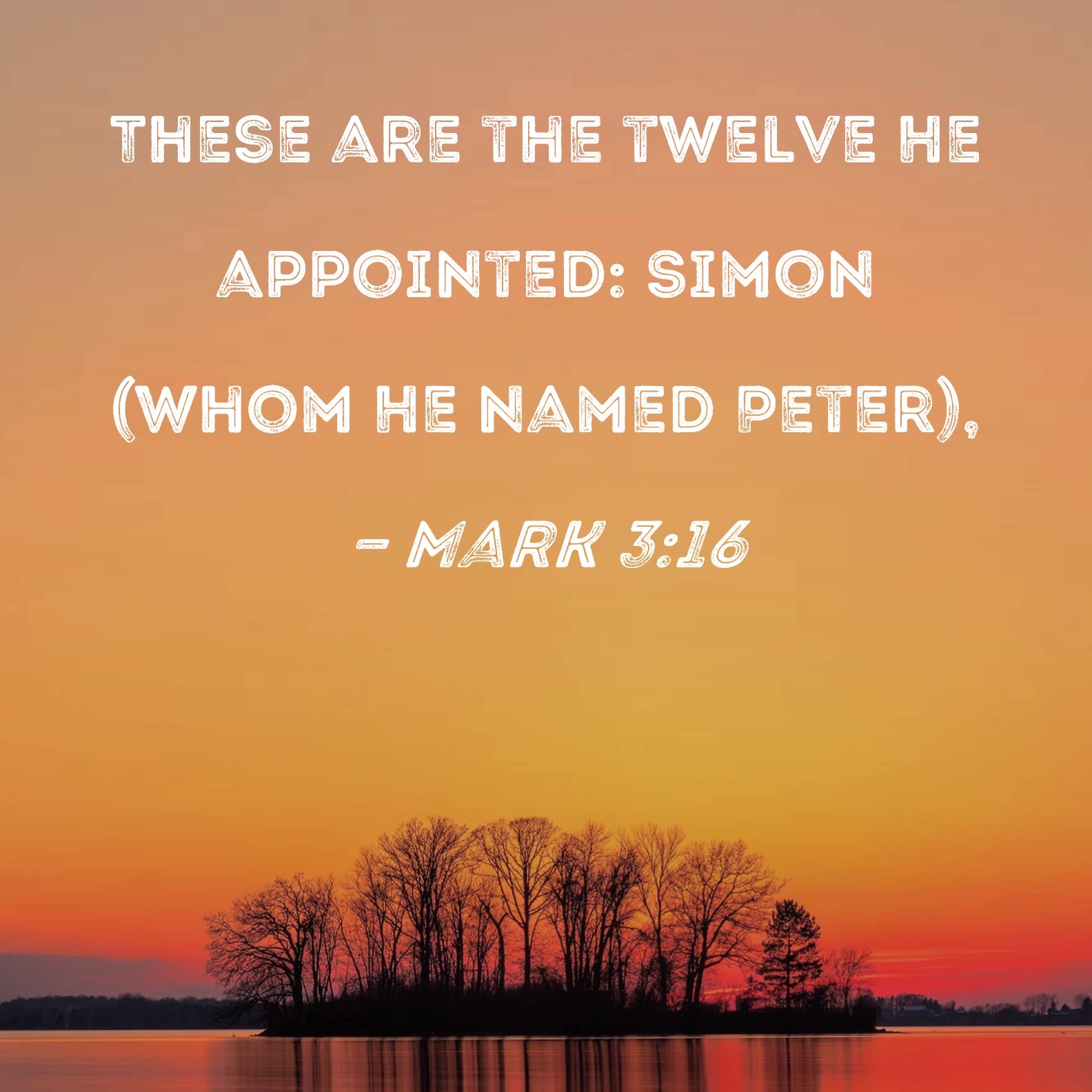 Mark 3:16 These are the twelve He appointed: Simon (whom He named Peter),