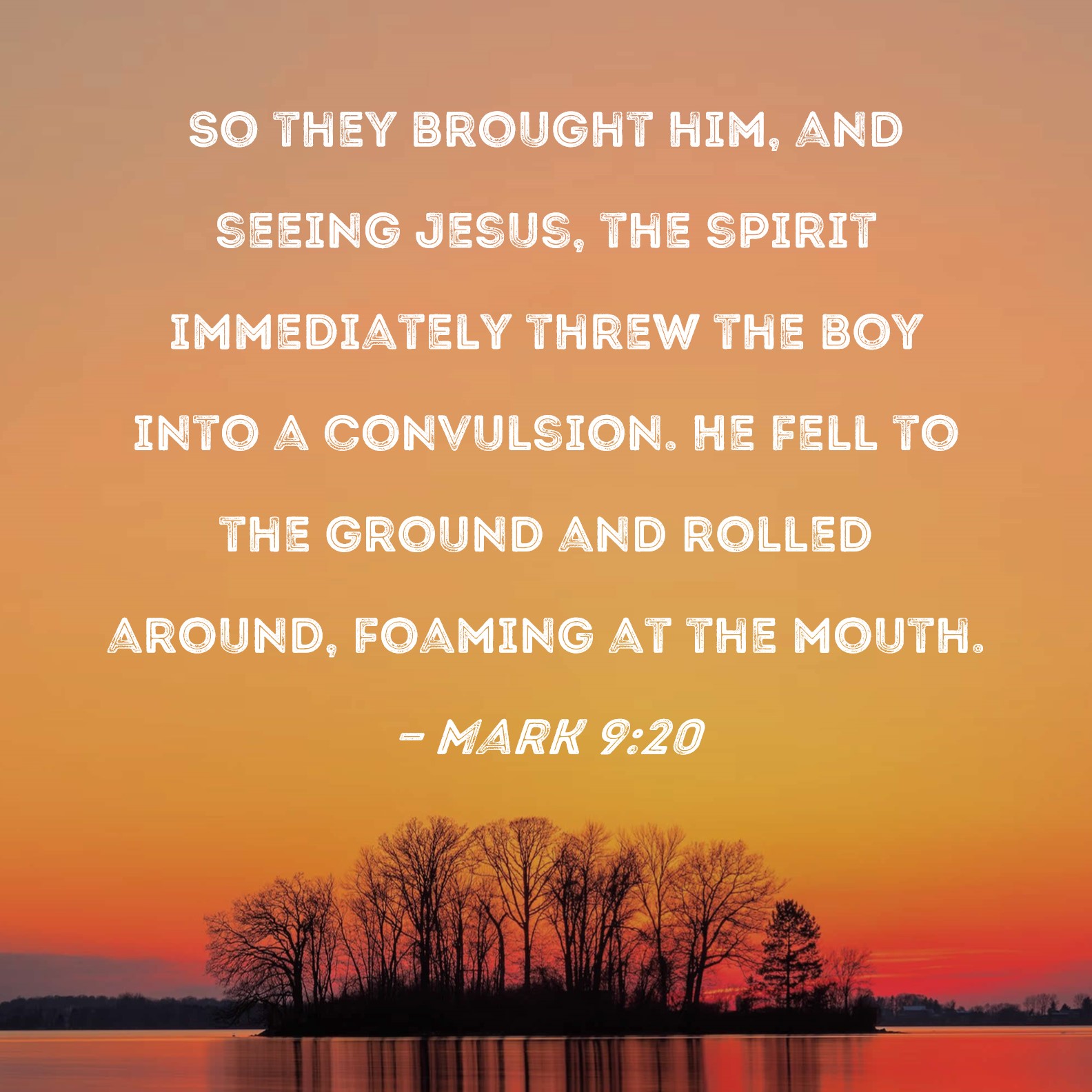 Mark 9:20 So they brought him, and seeing Jesus, the spirit immediately threw the boy into a convulsion. He fell to the ground and rolled around, foaming at the mouth.