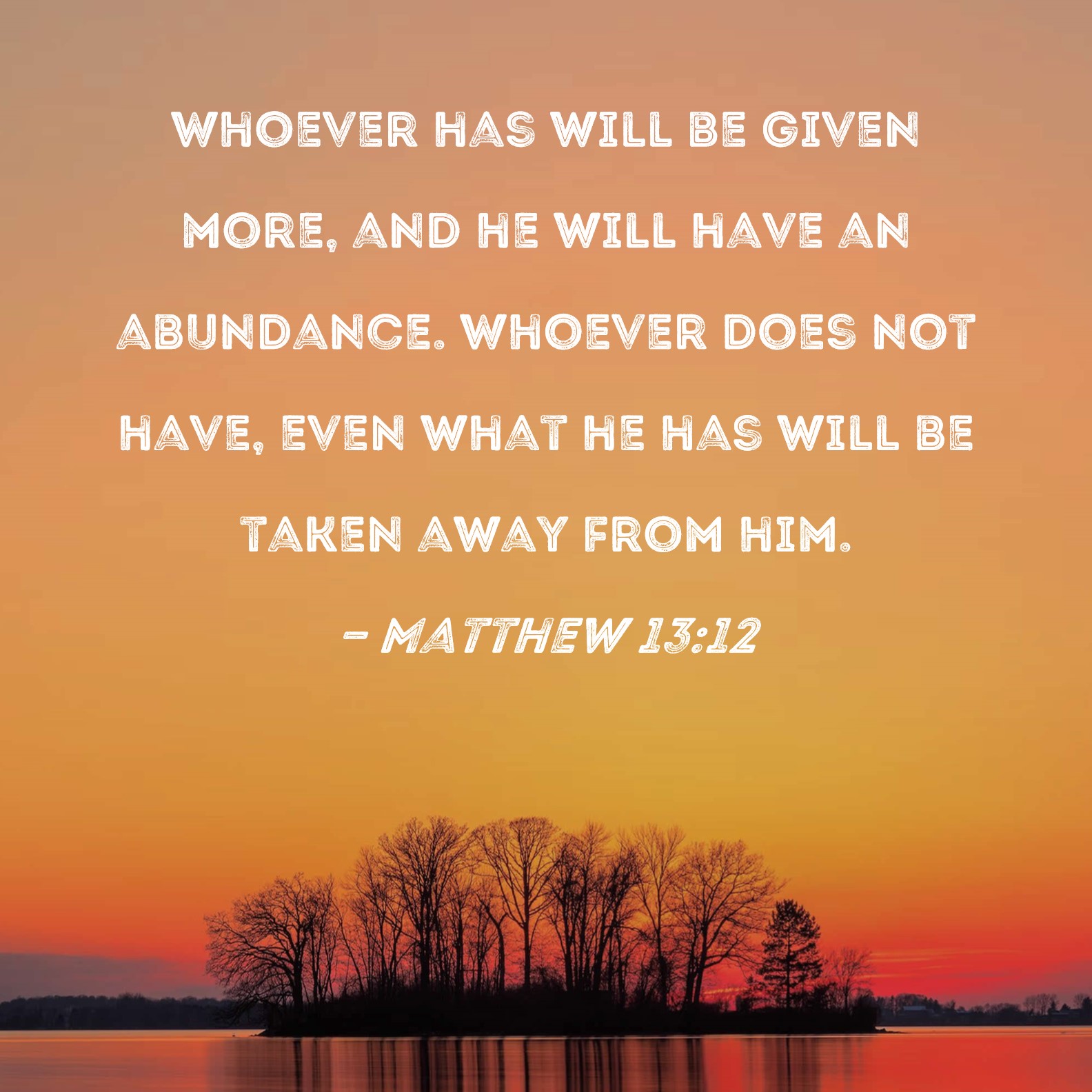 Matthew 13:12 Whoever has will be given more, and he will have an abundance. Whoever does not have, even what he has will be taken away from him.