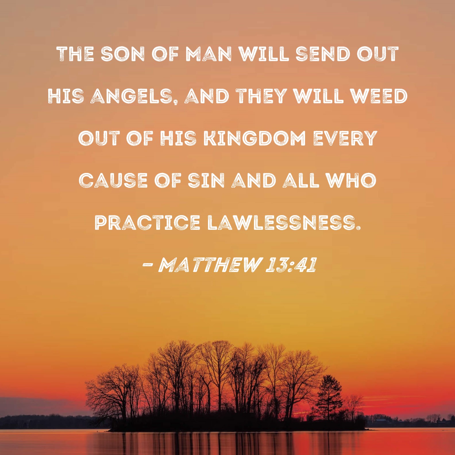 Matthew 13:41 The Son of Man will send out His angels, and they will weed out of His kingdom every cause of sin and all who practice lawlessness.