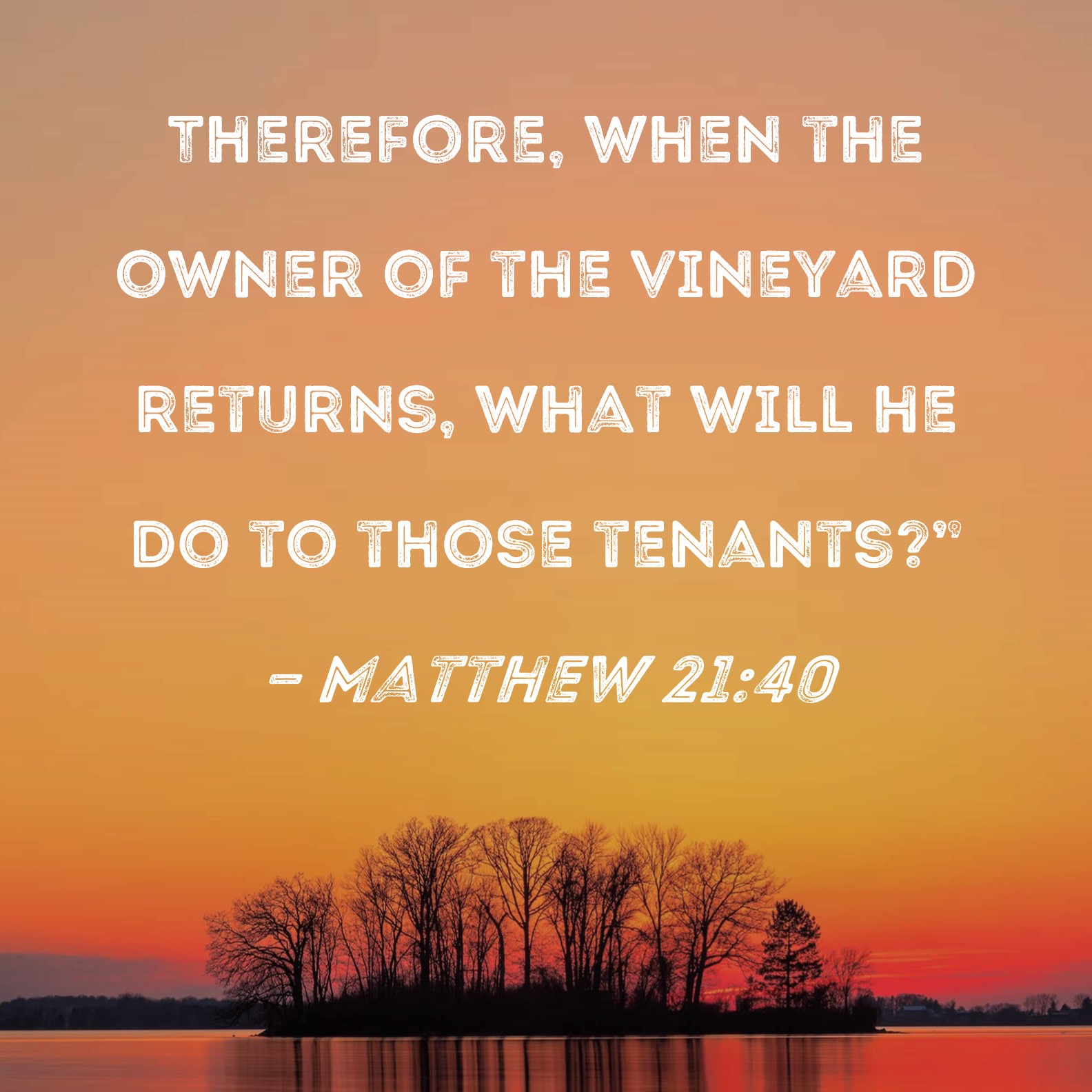 Matthew 21:40 Therefore, when the owner of the vineyard returns, what will he do to those tenants?"
