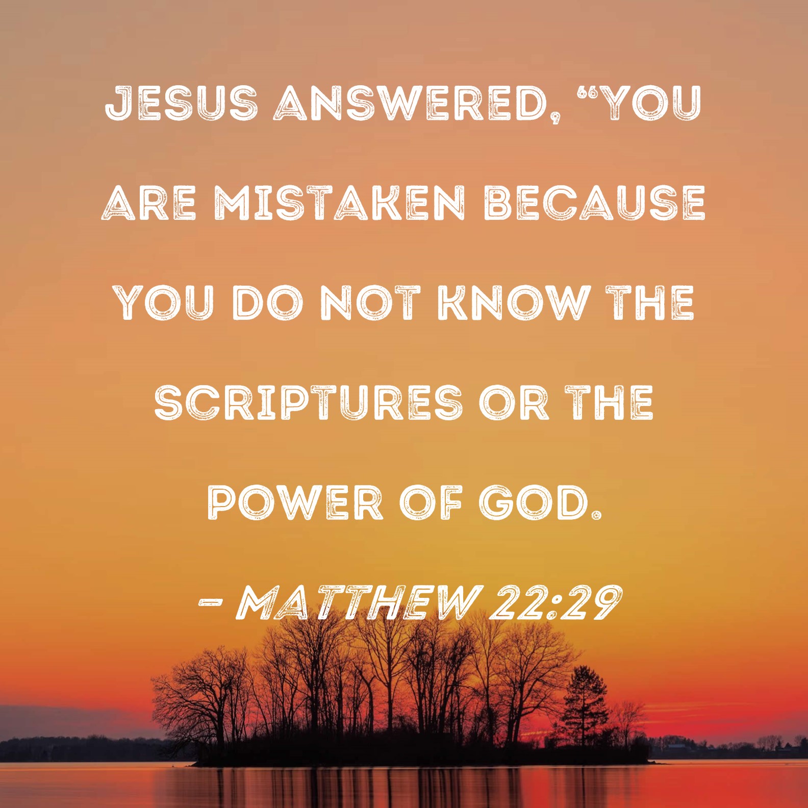 Matthew 22:29 Jesus answered, "You are mistaken because you do not know the Scriptures or the power of God.
