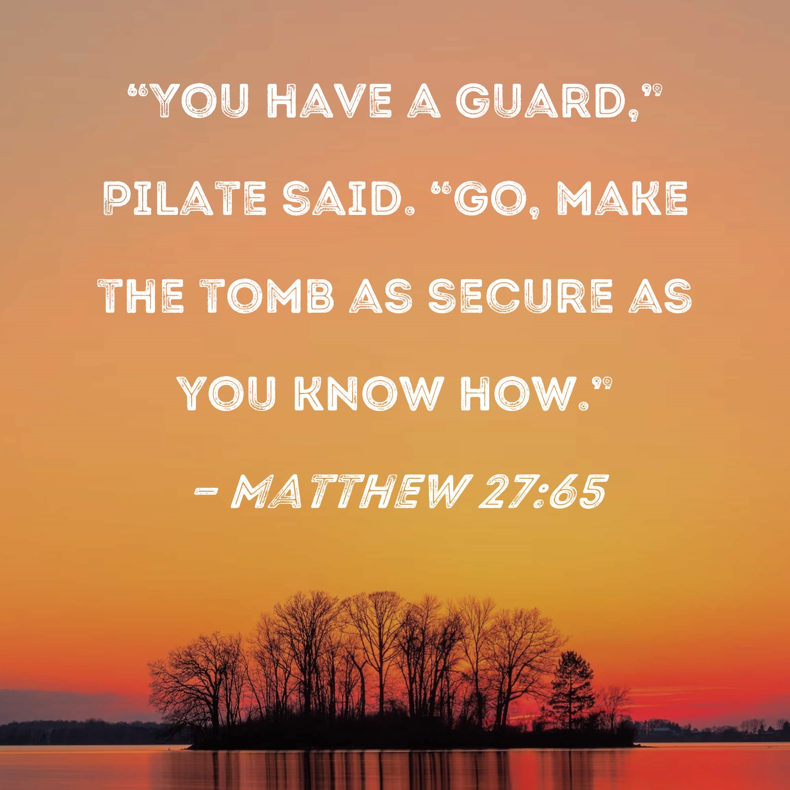 Matthew 27:65 "You have a guard," Pilate said. "Go, make the tomb as secure as you know how."