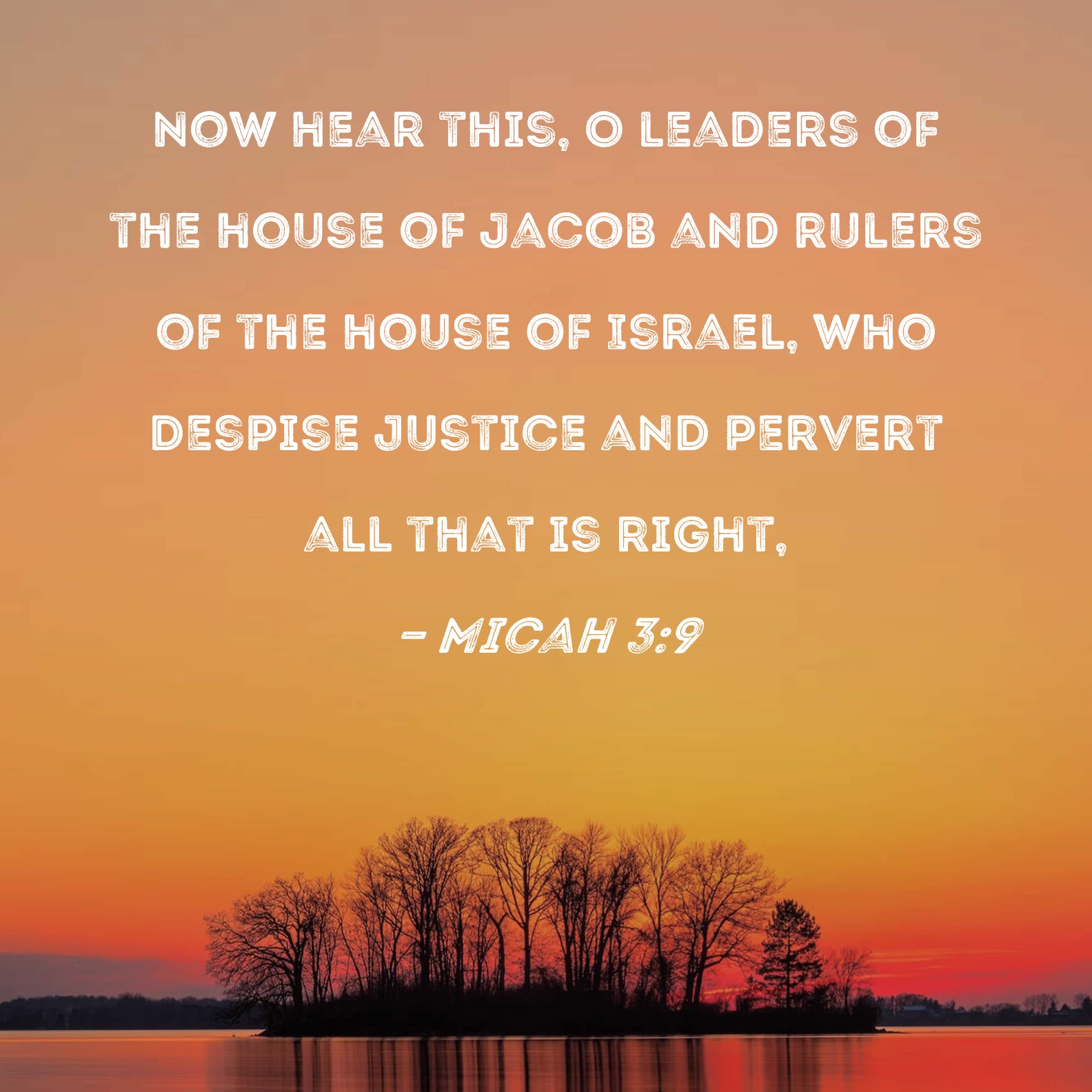 Micah 3:9 Now hear this, O leaders of the house of Jacob and rulers of the house of Israel, who despise justice and pervert all that is right,