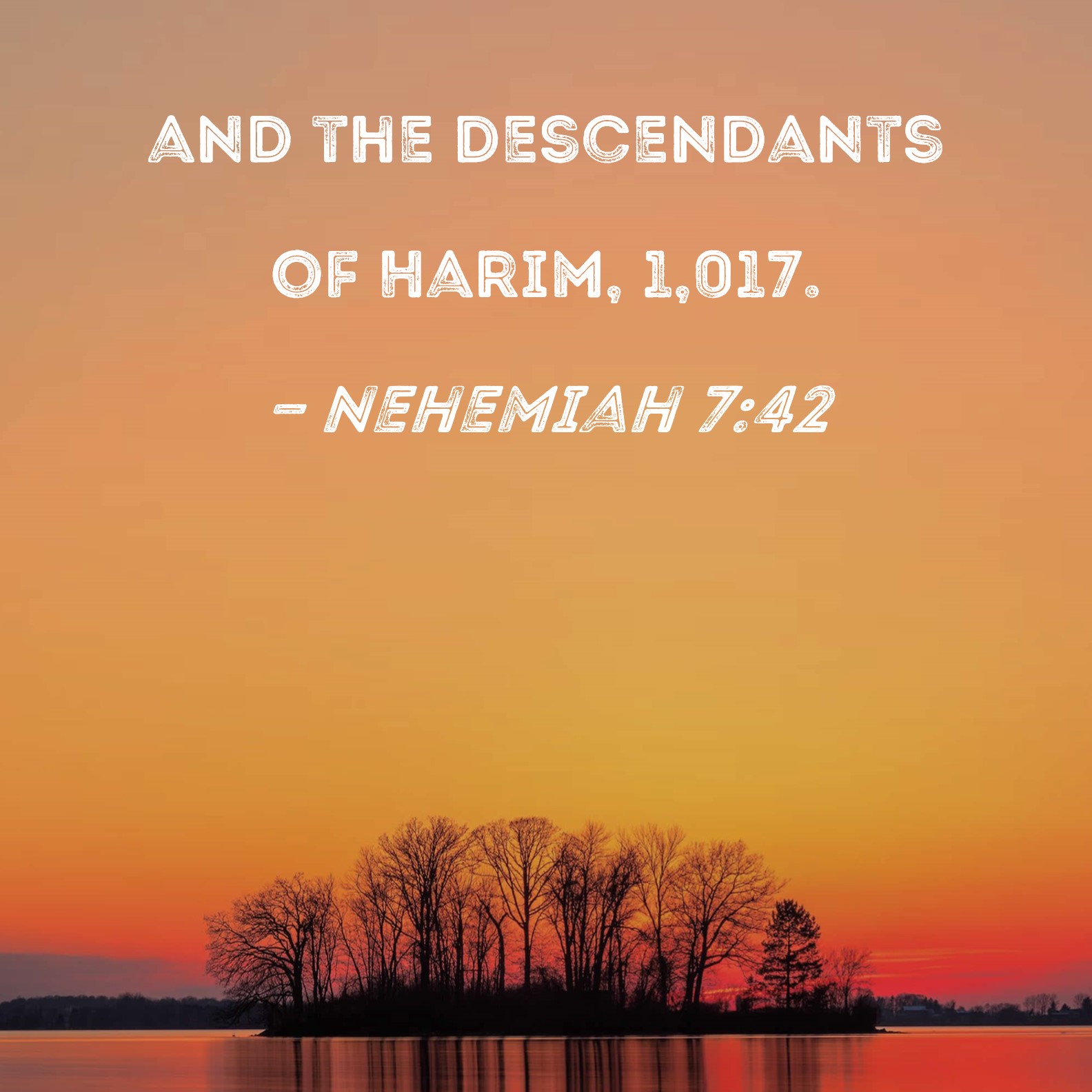 Nehemiah 7:42 and the descendants of Harim, 1,017.