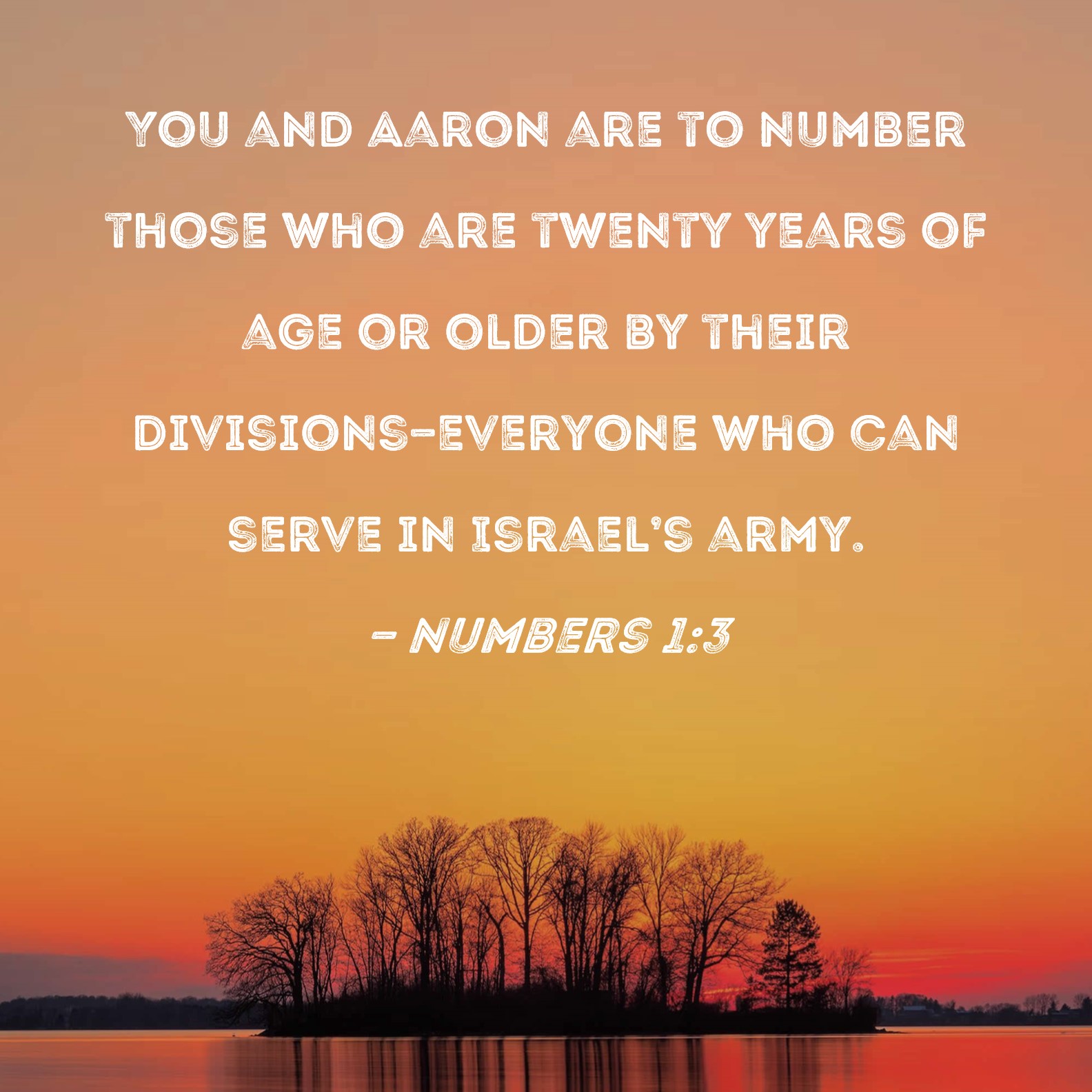 Numbers 1:3 You and Aaron are to number those who are twenty years of age or older by their divisions--everyone who can serve in Israel's army.
