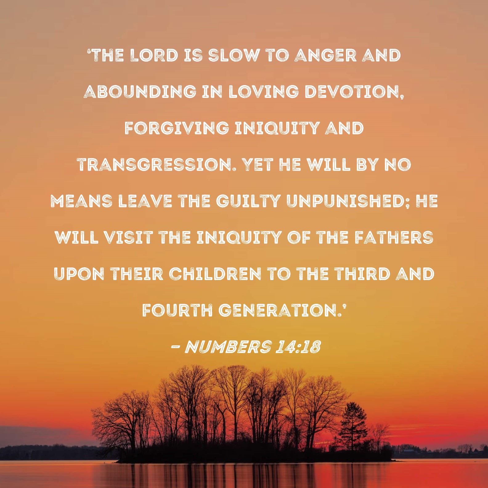 Numbers 14:18 The LORD is slow to anger and abounding in loving devotion, forgiving iniquity and transgression. Yet He will by no means leave the guilty unpunished; He will visit the iniquity of the fathers upon their children to the third and fourth generation.'