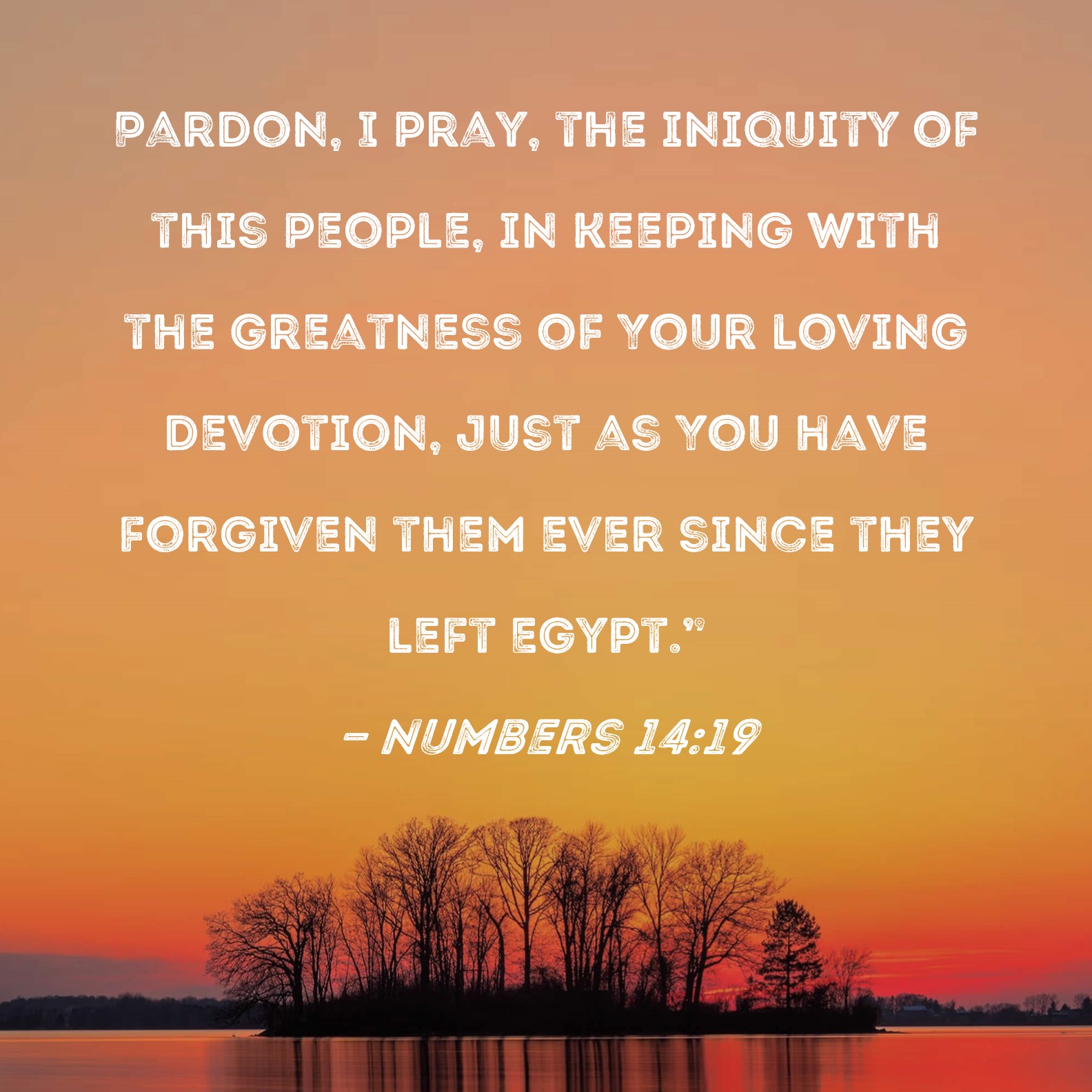 Numbers 14:19 Pardon, I pray, the iniquity of this people, in keeping with the greatness of Your loving devotion, just as You have forgiven them ever since they left Egypt."