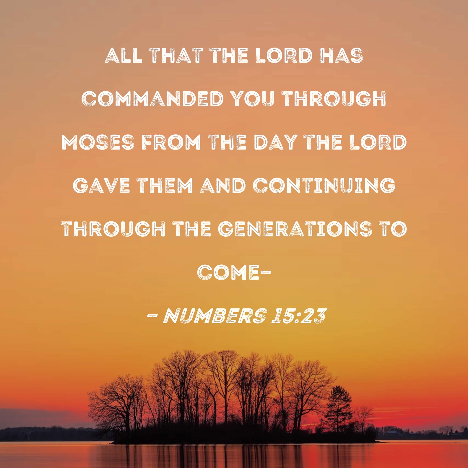BSB: all that the LORD has commanded you through Moses from the day the LORD gave them and continuing through the generations to come-- KJV: Even all that the LORD hath commanded you by the hand of Moses, from the day that the LORD commanded Moses, and henceforward among your generations; DRB: And by him hath commanded you, from the day that he began to command and thenceforward, DBT: all that Jehovah hath commanded you through Moses, from the day that Jehovah gave commandment, and henceforward throughout your generations; ERV: even all that the LORD hath commanded you by the hand of Moses, from the day that the LORD gave commandment, and onward throughout your generations; WBT: Even all that the LORD hath commanded you by the hand of Moses, from the day that the LORD commanded Moses, and henceforward among your generations; WEB: even all that Yahweh has commanded you by Moses, from the day that Yahweh gave commandment and onward throughout your generations— YLT: the whole that Jehovah hath charged upon you by the hand of Moses, from the day that Jehovah hath commanded, and henceforth, to your generations,Links Numbers 15:23 NIV • Numbers 15:23 NLT • Numbers 15:23 ESV • Numbers 15:23 NASB • Numbers 15:23 KJV • Numbers 15:23 Interlinear • Numbers 15:23 Commentaries • Numbers 15:23 Parallel Texts • Numbers 15:23 Bible Apps • Numbers 15:23 Parallel • Bible Hub |