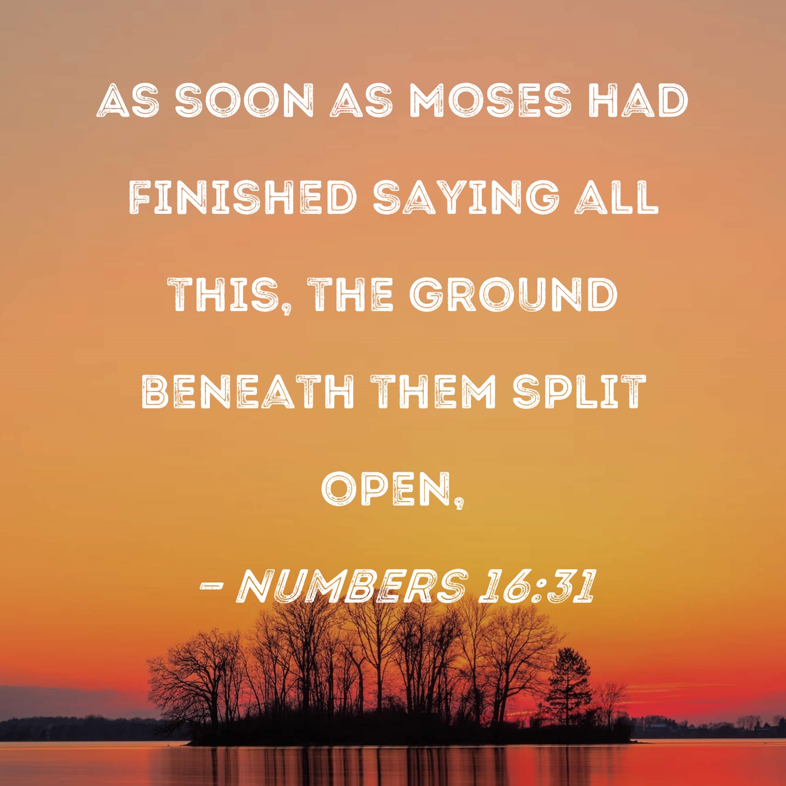 Numbers 16:31 As soon as Moses had finished saying all this, the ground beneath them split open,