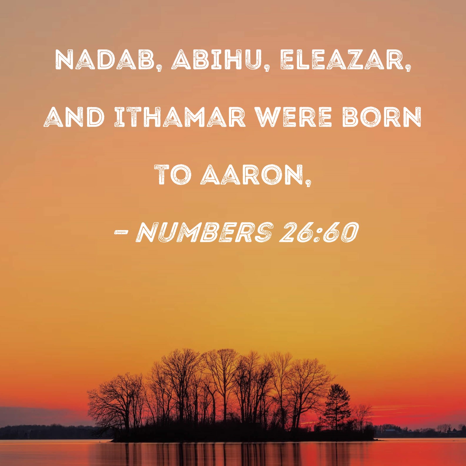 Numbers 26:60 Nadab, Abihu, Eleazar, and Ithamar were born to Aaron,
