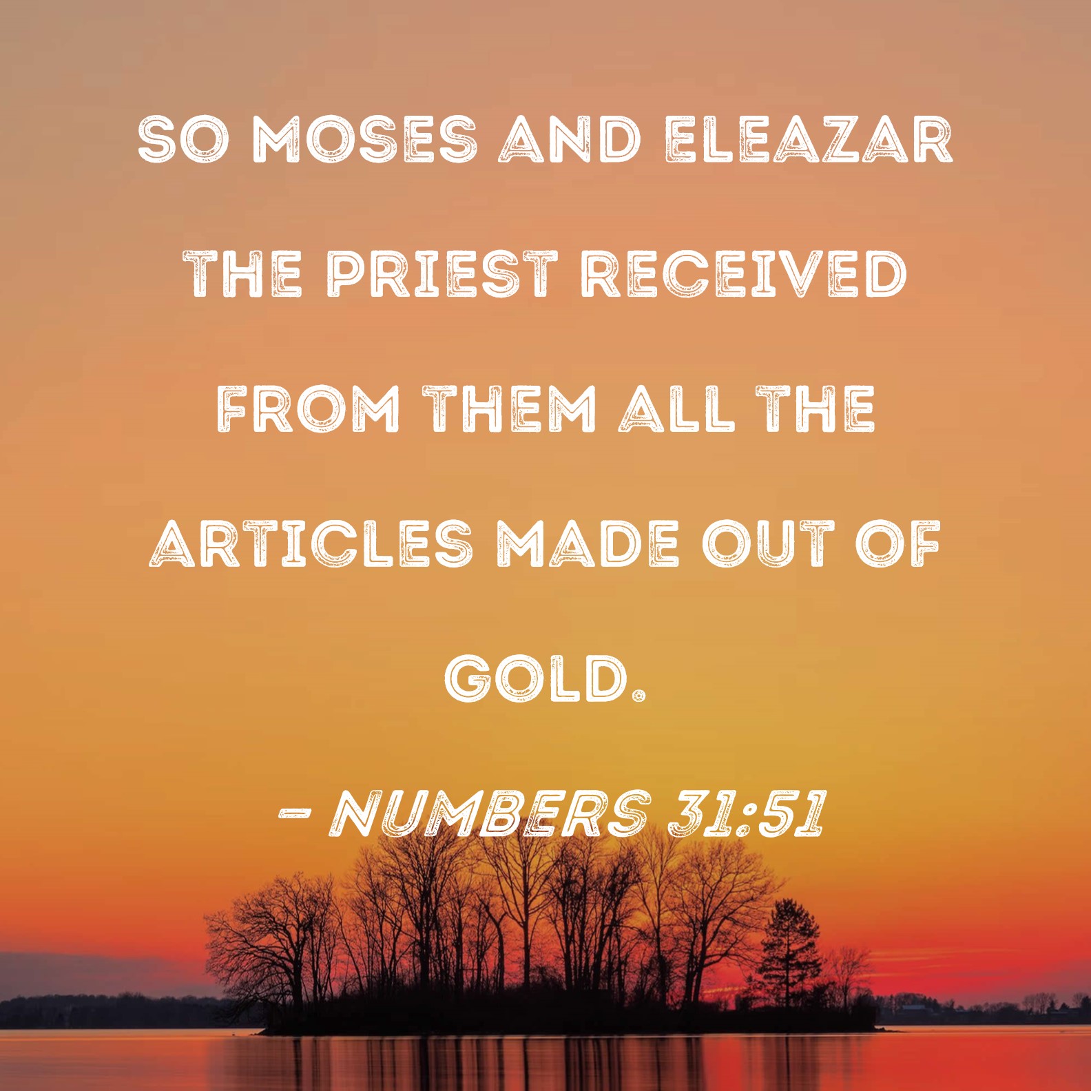 Numbers 31:51 So Moses and Eleazar the priest received from them all the articles made out of gold.