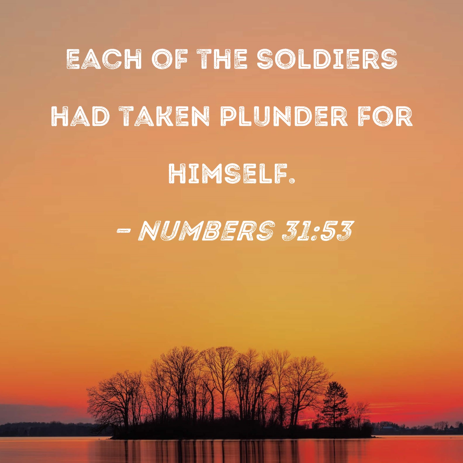 Numbers 31:53 Each of the soldiers had taken plunder for himself.