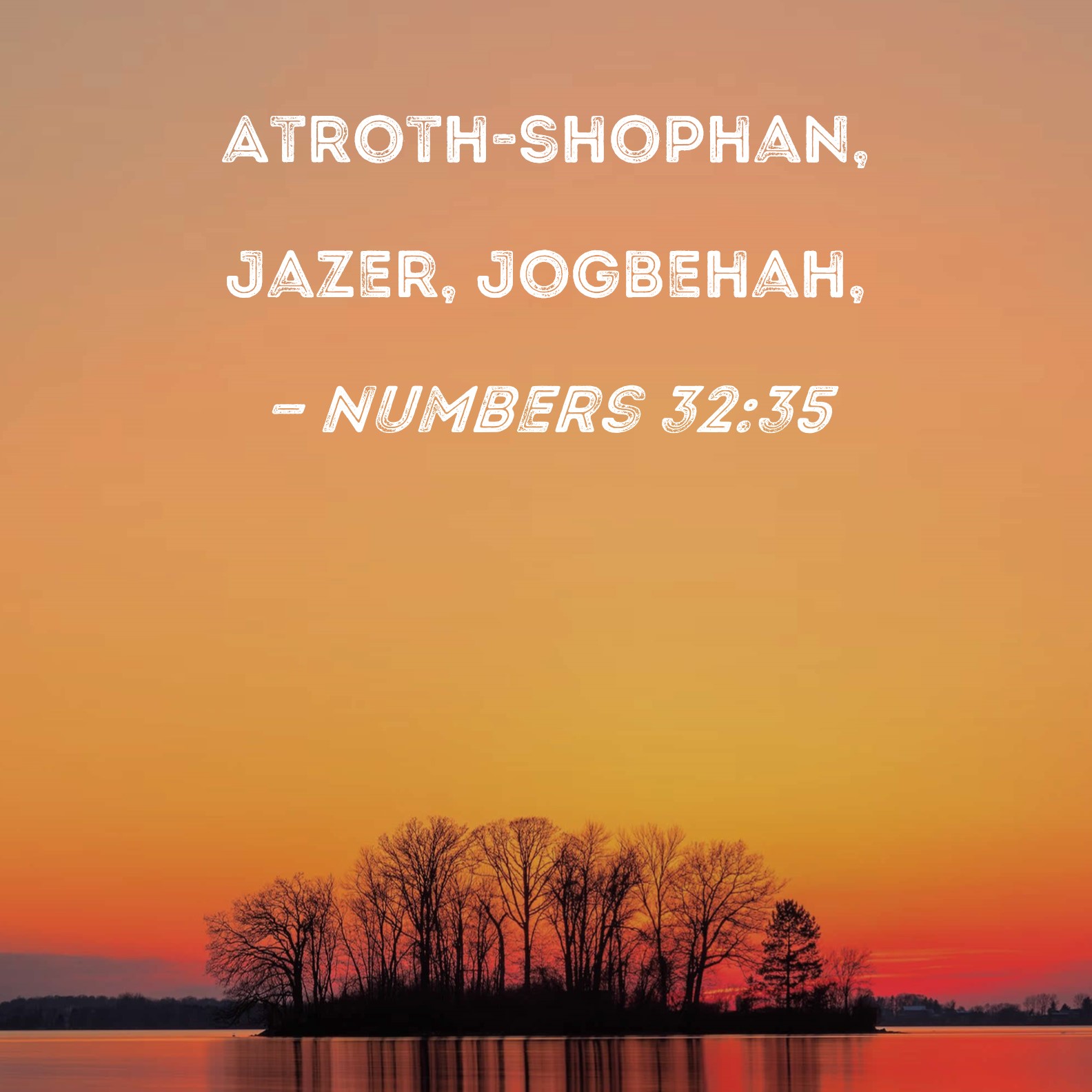 BSB: Atroth-shophan, Jazer, Jogbehah, KJV: And Atroth, Shophan, and Jaazer, and Jogbehah, DRB: And Etroth, and Sophan, and Jazer, and Jegbaa, DBT: and Atroth-Shophan, and Jaazer, and Jogbebah, ERV: and Atroth-shophan, and Jazer, and Jogbehah; WBT: And Atroth, Shophan, and Jaazer, and Jogbehah, WEB: Atroth-shophan, Jazer, Jogbehah, YLT: and Atroth, Shophan, and Jaazer, and Jogbehah,Links Numbers 32:35 NIV • Numbers 32:35 NLT • Numbers 32:35 ESV • Numbers 32:35 NASB • Numbers 32:35 KJV • Numbers 32:35 Interlinear • Numbers 32:35 Commentaries • Numbers 32:35 Parallel Texts • Numbers 32:35 Bible Apps • Numbers 32:35 Parallel • Bible Hub |