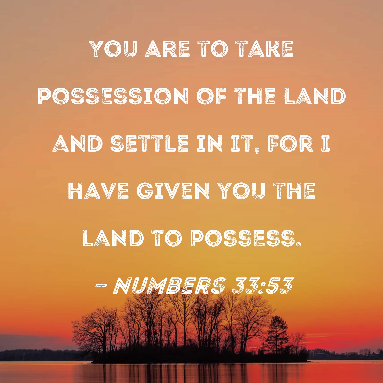 Numbers 33:53 You are to take possession of the land and settle in it, for I have given you the land to possess.