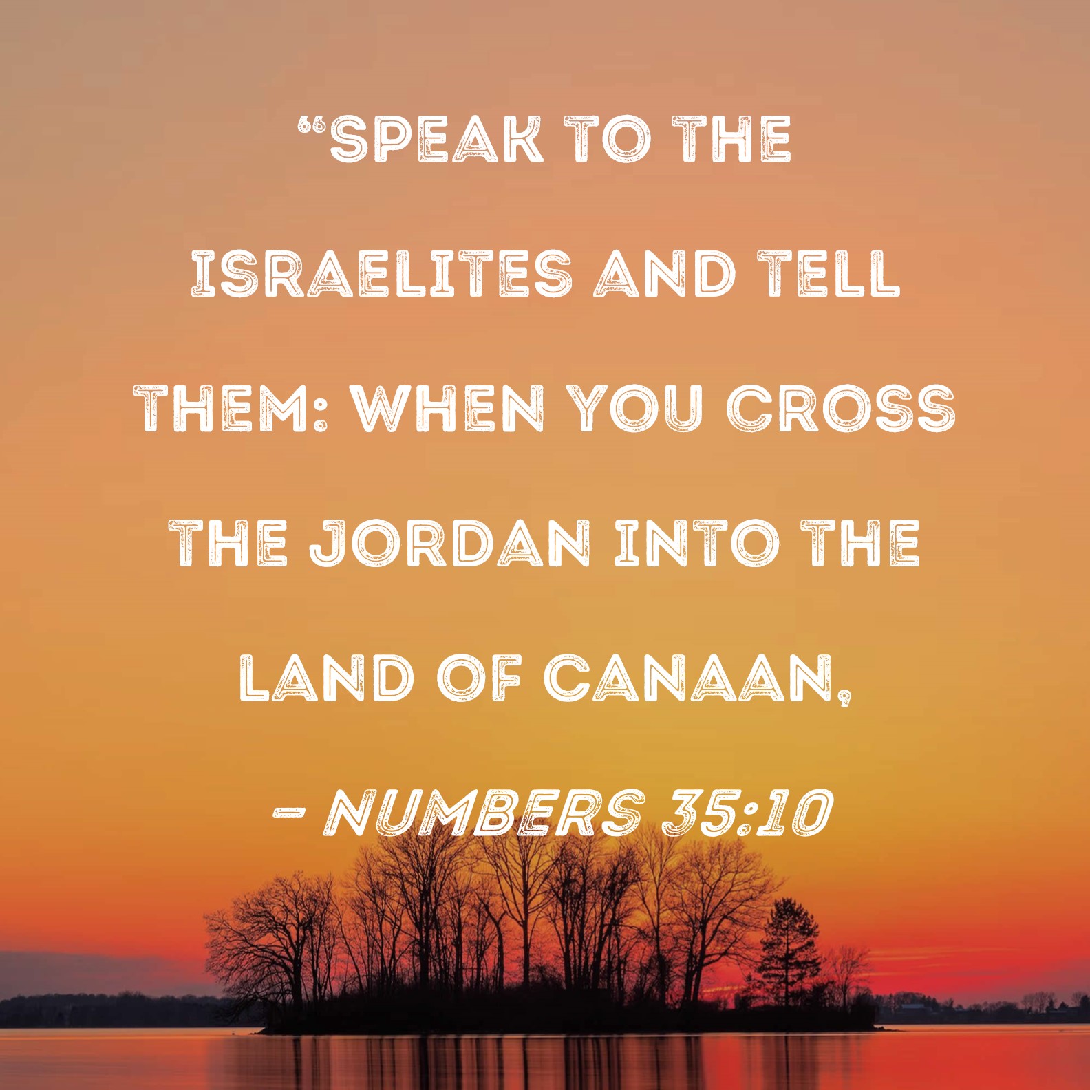 BSB: "Speak to the Israelites and tell them: When you cross the Jordan into the land of Canaan, KJV: Speak unto the children of Israel, and say unto them, When ye be come over Jordan into the land of Canaan; DRB: Speak to the children of Israel, and thou shalt say to them: When you shall have passed over the Jordan into the land of Chanaan, DBT: Speak unto the children of Israel, and say unto them, When ye pass over the Jordan into the land of Canaan, ERV: Speak unto the children of Israel, and say unto them, When ye pass over Jordan into the land of Canaan, WBT: Speak to the children of Israel, and say to them, When ye have passed over Jordan into the land of Canaan; WEB: “Speak to the children of Israel, and tell them, ‘When you pass over the Jordan into the land of Canaan, YLT: 'Speak unto the sons of Israel, and thou hast said unto them, When ye are passing over the Jordan to the land of Canaan,Links Numbers 35:10 NIV • Numbers 35:10 NLT • Numbers 35:10 ESV • Numbers 35:10 NASB • Numbers 35:10 KJV • Numbers 35:10 Interlinear • Numbers 35:10 Commentaries • Numbers 35:10 Parallel Texts • Numbers 35:10 Bible Apps • Numbers 35:10 Parallel • Bible Hub |