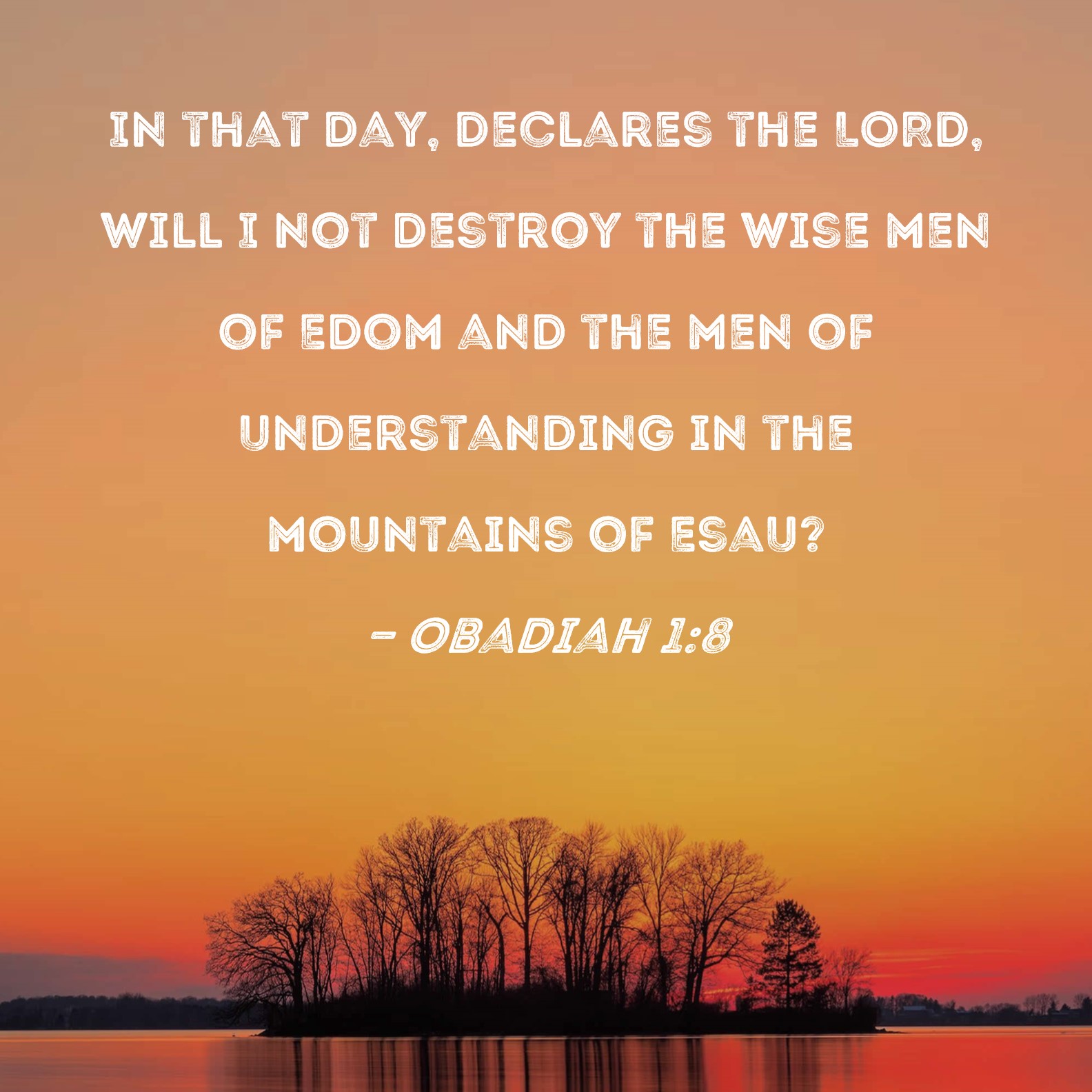 Obadiah 1:8 In that day, declares the LORD, will I not destroy the wise men of Edom and the men of understanding in the mountains of Esau?