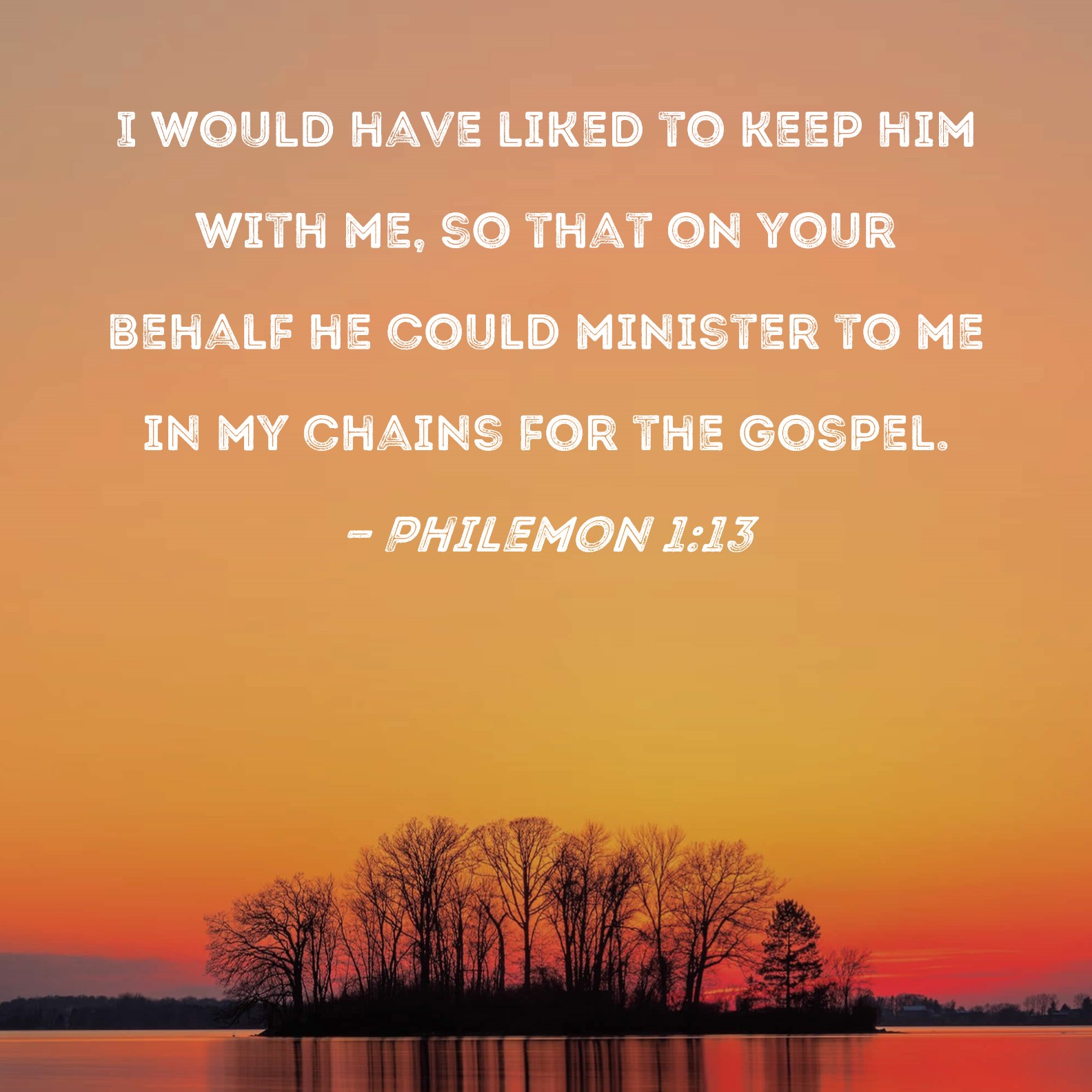 Philemon 1:13 I would have liked to keep him with me, so that on your behalf he could minister to me in my chains for the gospel.
