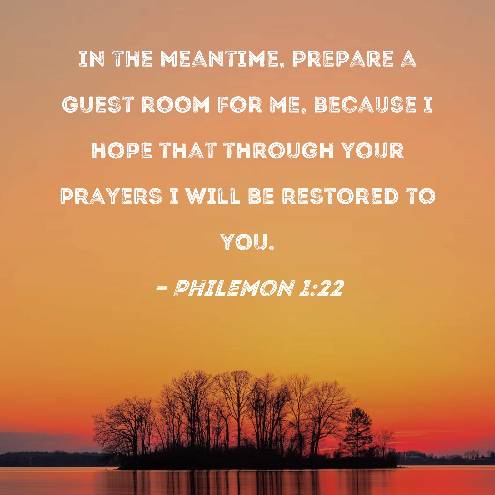 Philemon 1:22 In the meantime, prepare a guest room for me, because I hope that through your prayers I will be restored to you.