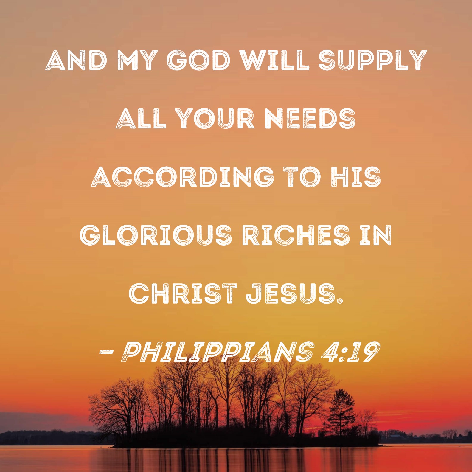 and my God shall supply all your need, according to His riches in glory in Christ Jesus;