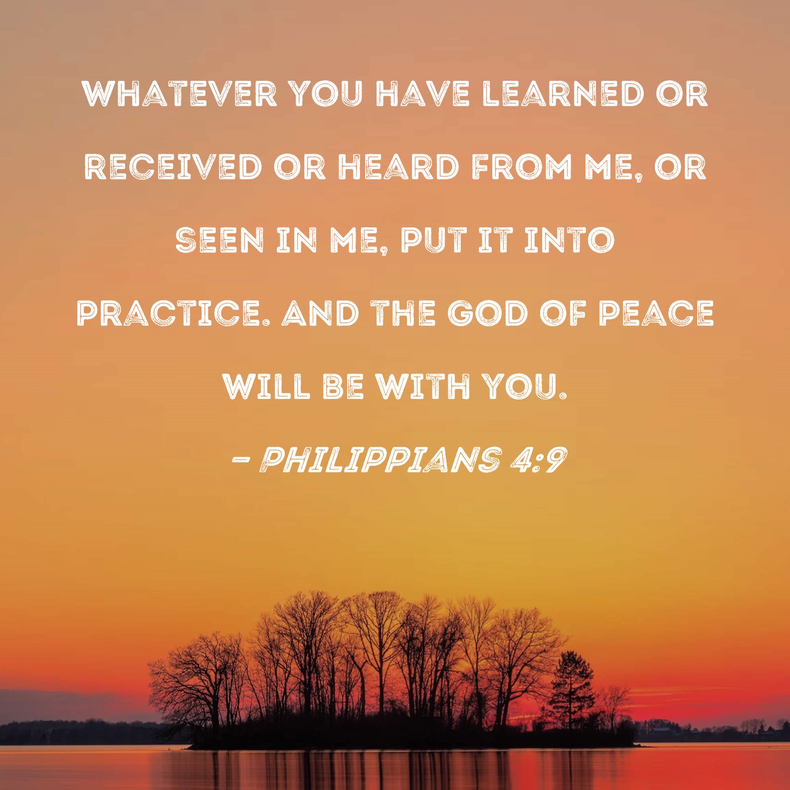 Philippians 4:9 Whatever you have learned or received or heard from me, or seen in me, put it into practice. And the God of peace will be with you.