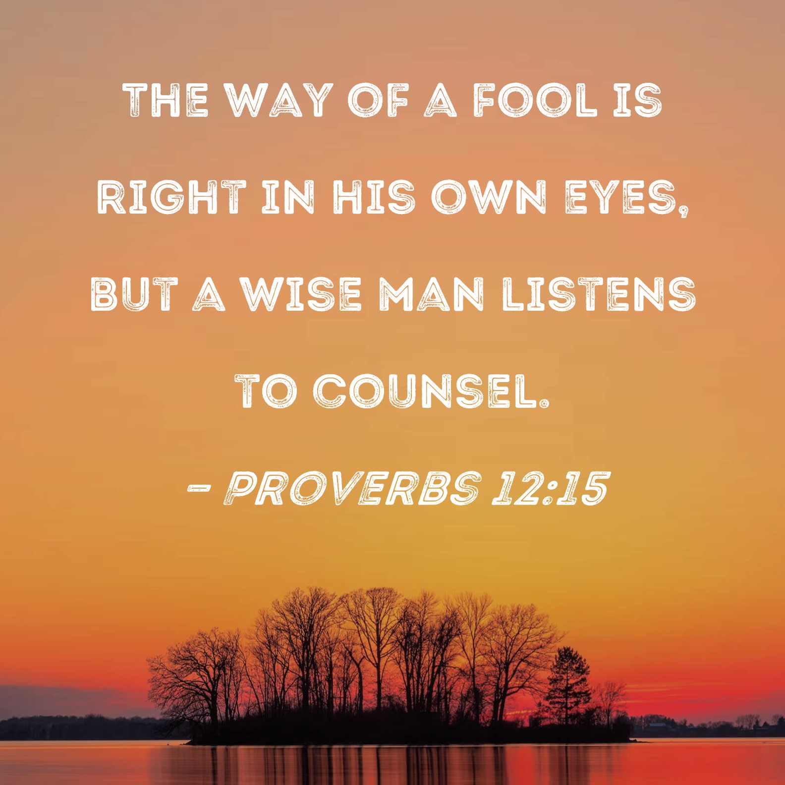 Proverbs 12:15 The way of a fool is right in his own eyes, but a wise man listens to counsel.