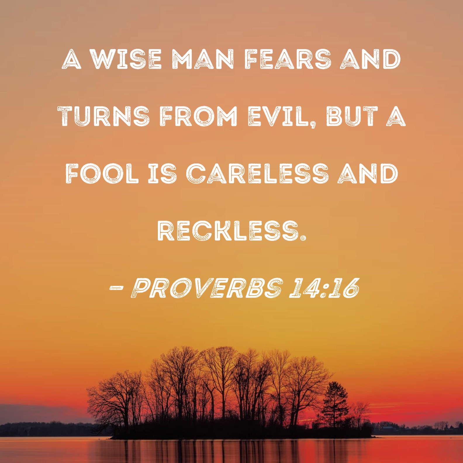 Proverbs 14:16 A wise man fears and turns from evil, but a fool is careless and reckless.