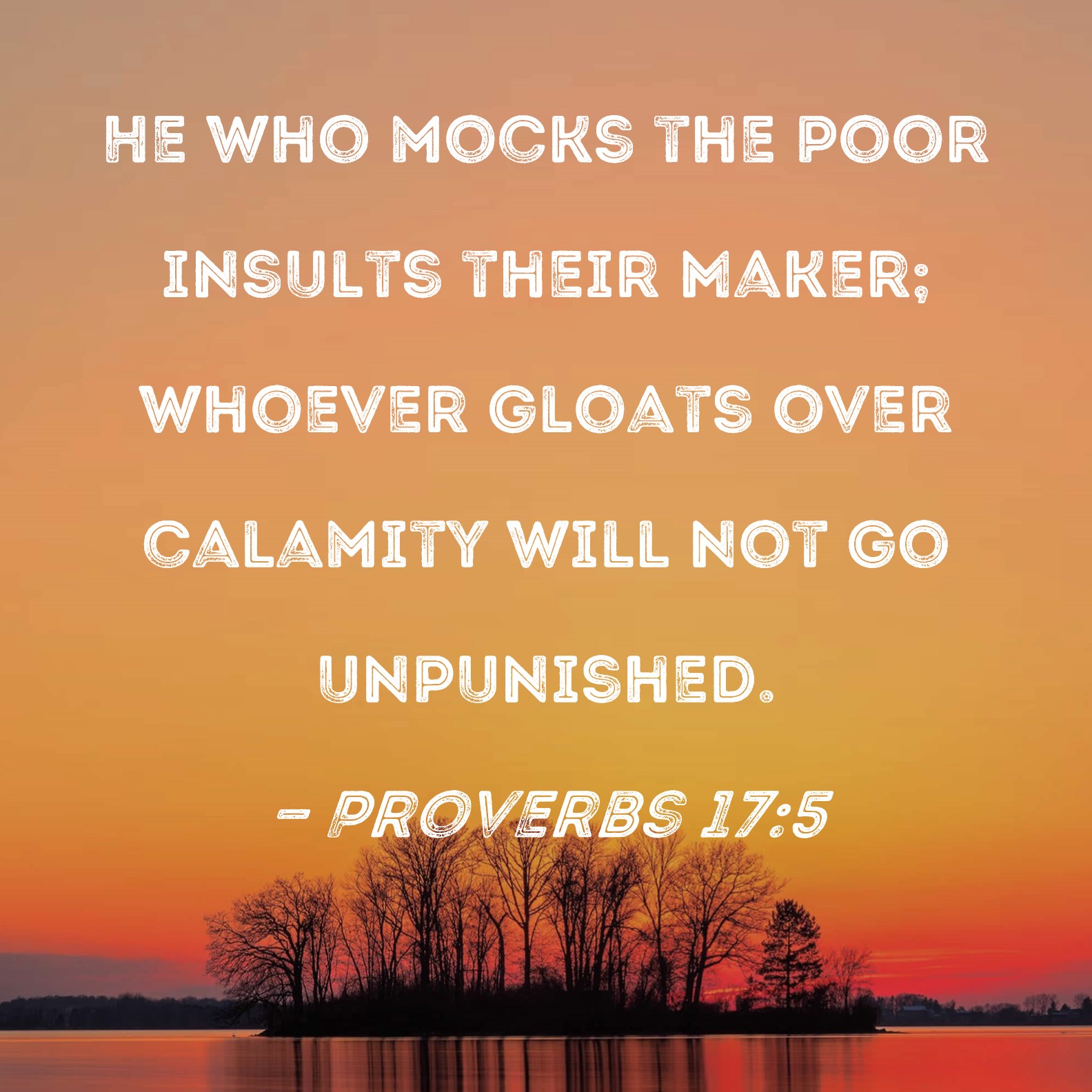 Proverbs 17:5 He who mocks the poor insults their Maker; whoever gloats over calamity will not go unpunished.