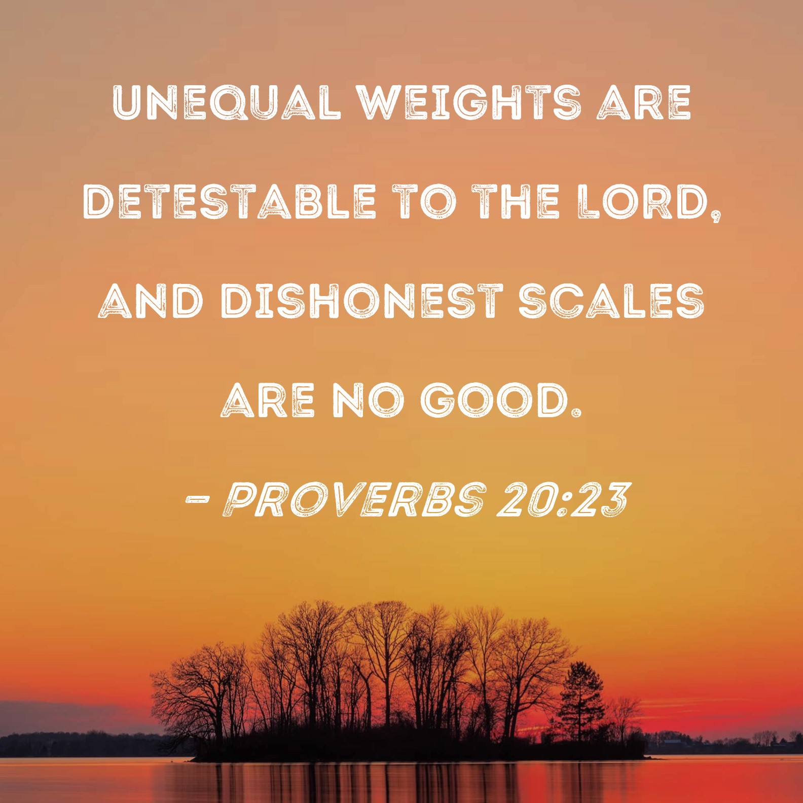 Proverbs 20:23 Unequal weights are detestable to the LORD, and dishonest scales are no good.