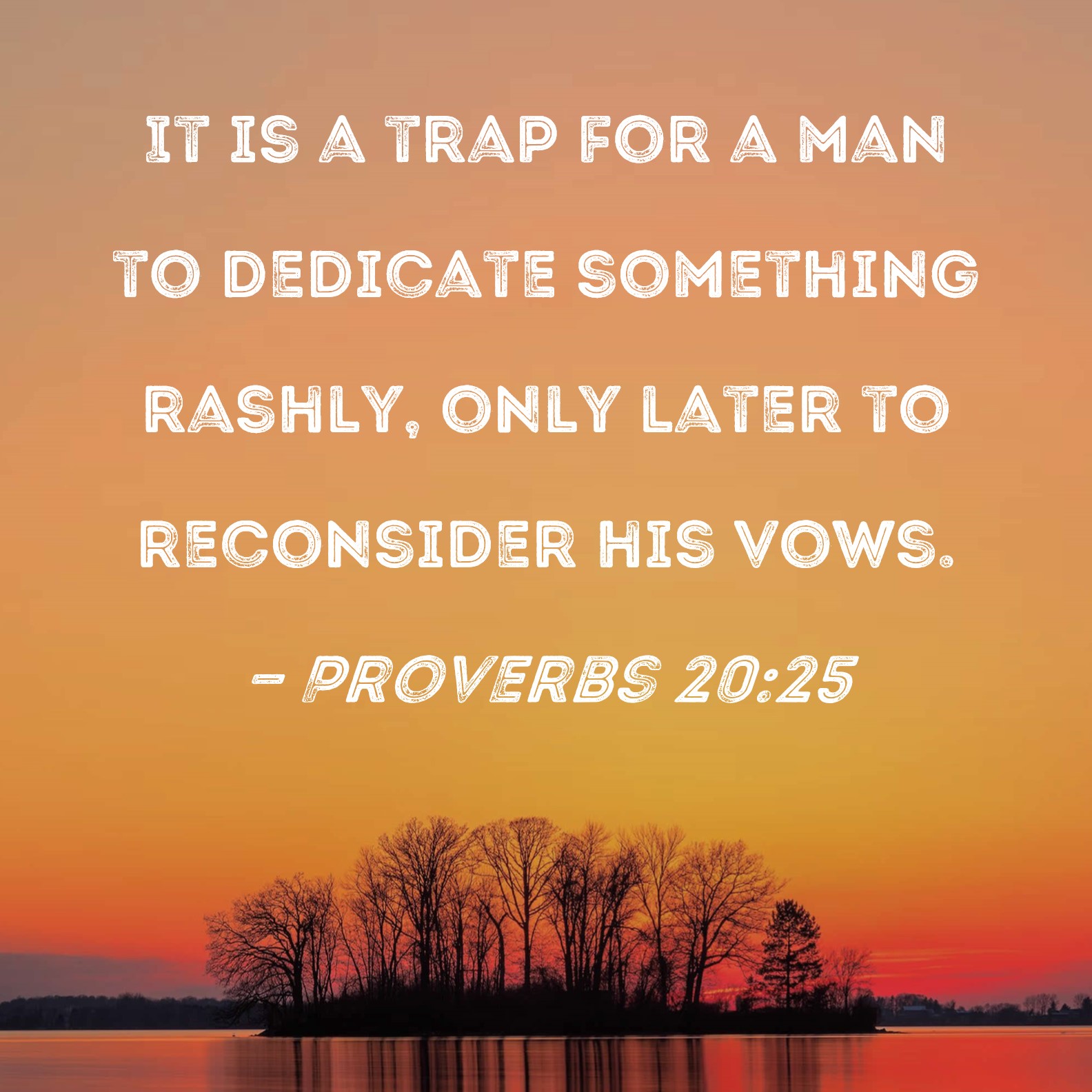 Proverbs 20:25 It is a trap for a man to dedicate something rashly, only later to reconsider his vows.