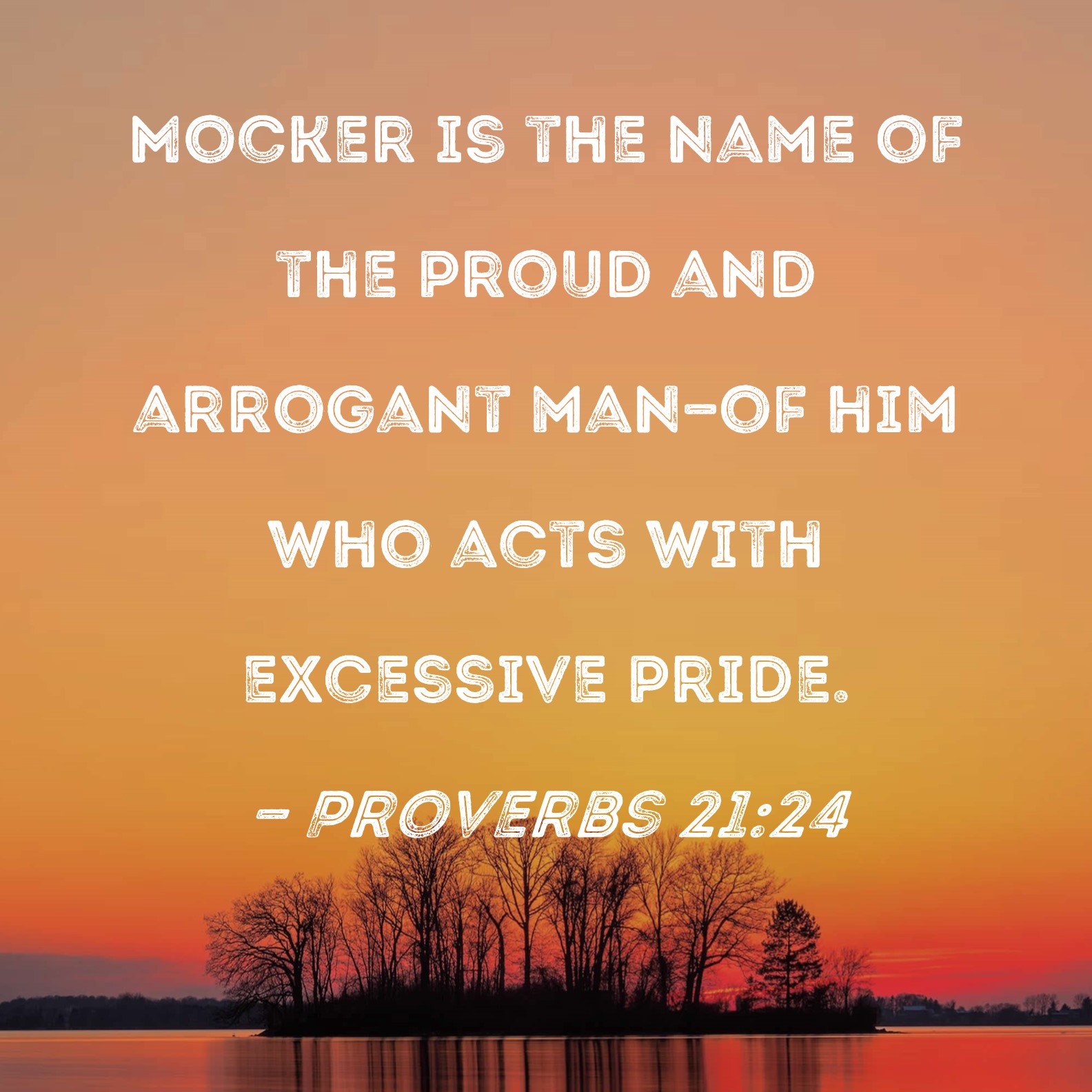 Proverbs 21:24 Mocker is the name of the proud and arrogant man--of him who acts with excessive pride.