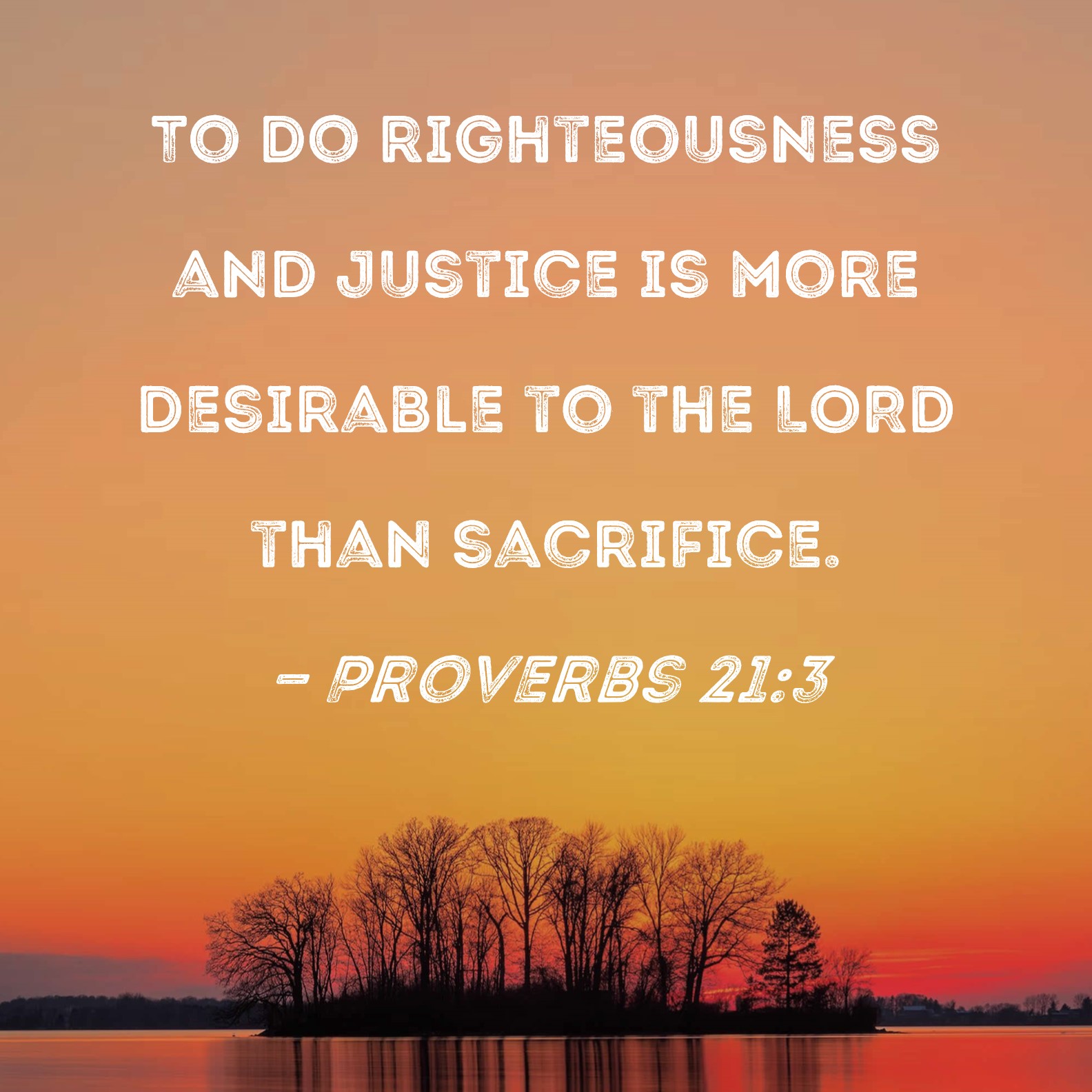 Proverbs 21:3 To do righteousness and justice is more desirable to the LORD than sacrifice.