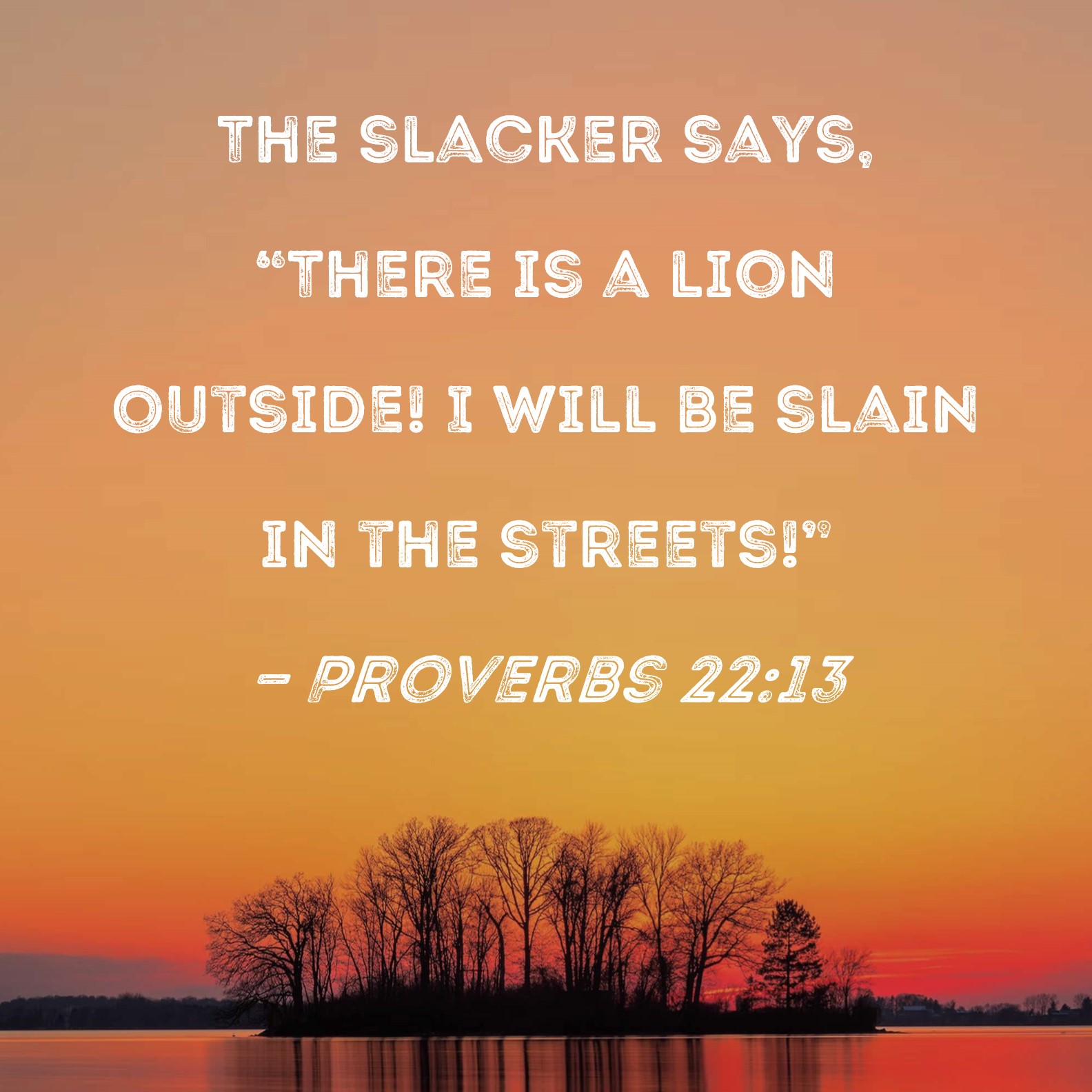 Proverbs 22:13 The slacker says, "There is a lion outside! I will be slain in the streets!"