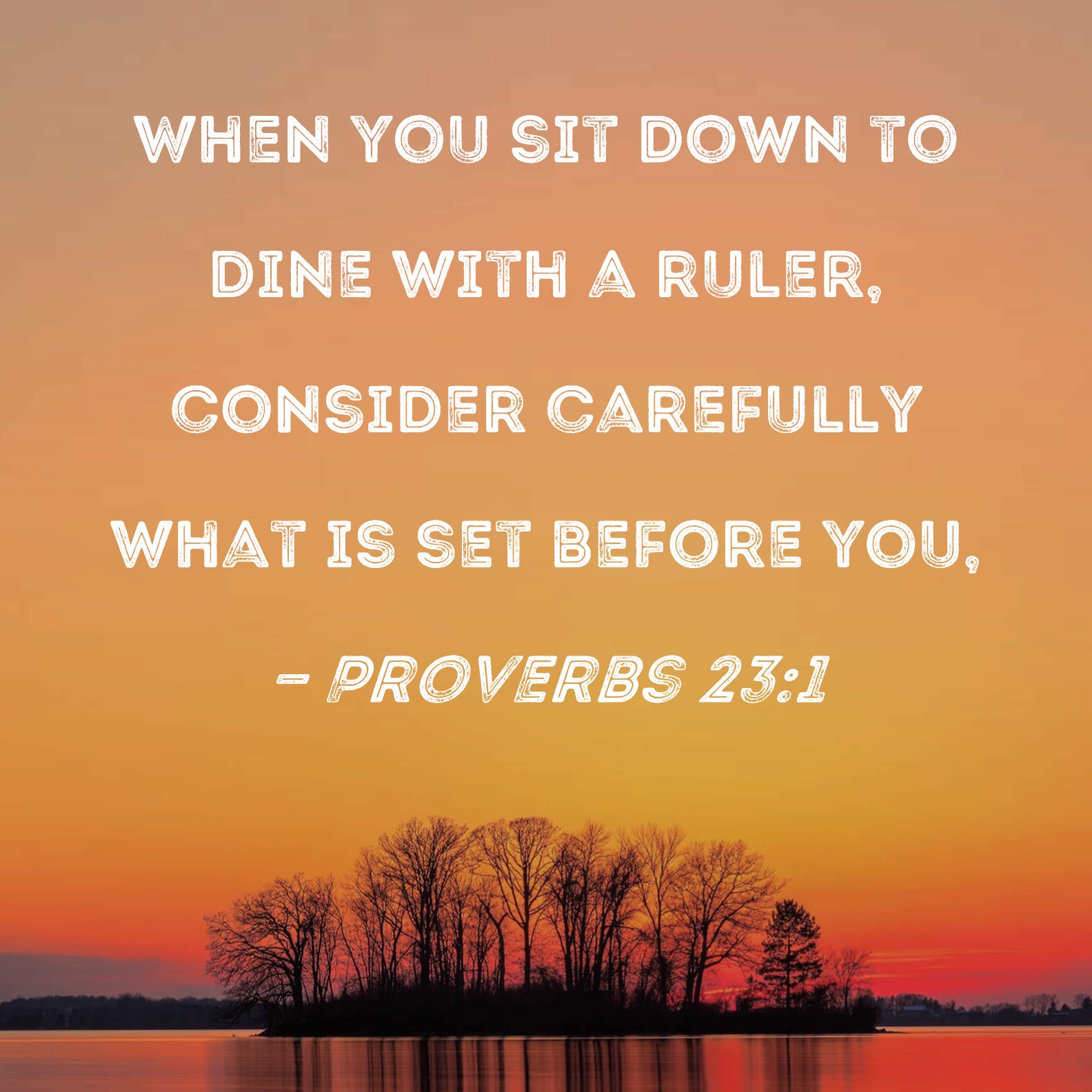 Proverbs 23:1 When you sit down to dine with a ruler, consider carefully what is set before you,