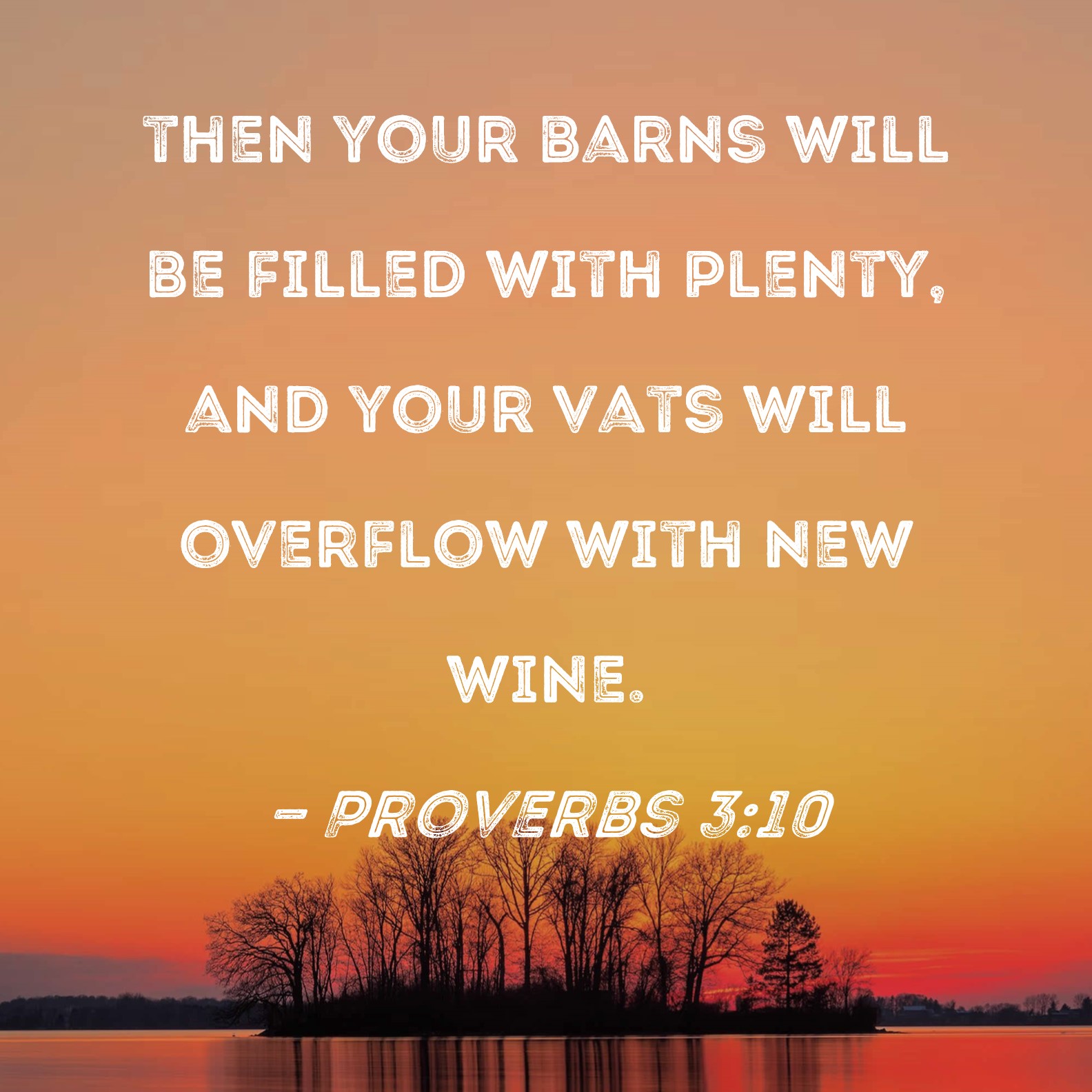 Proverbs 3:10 then your barns will be filled with plenty, and your vats will overflow with new wine.