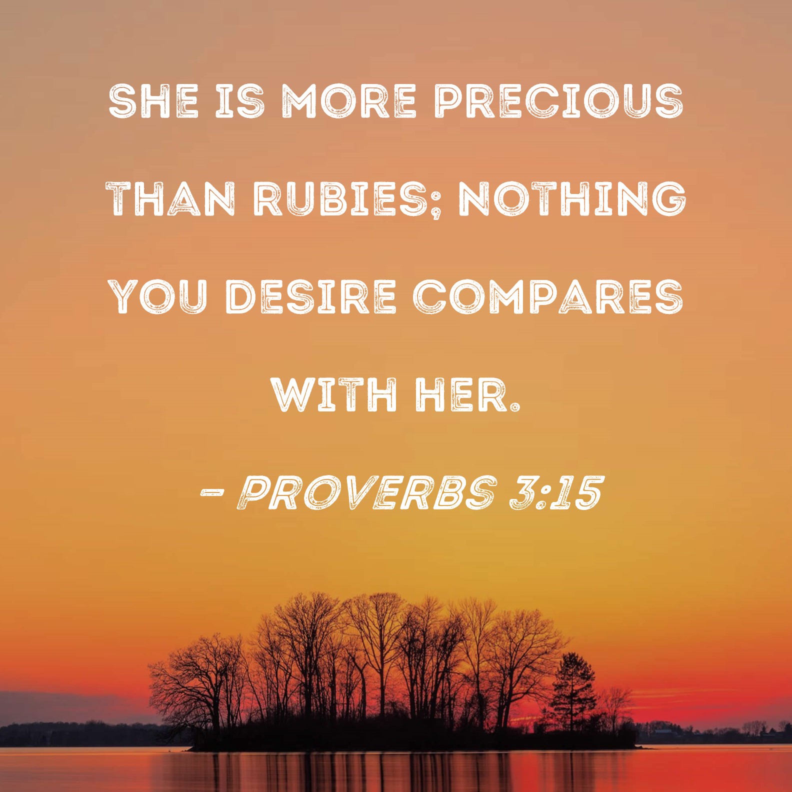 Proverbs 3:15 She is more precious than rubies; nothing you desire compares with her.