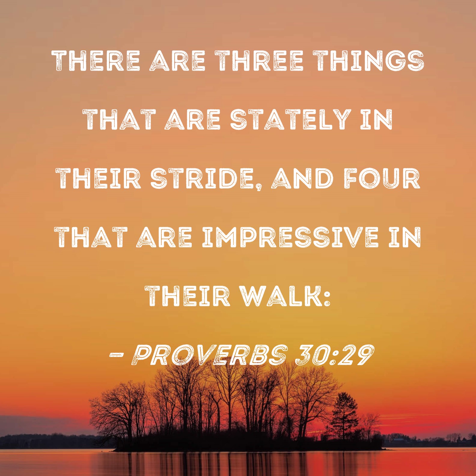 Proverbs 30:29 There are three things that are stately in their stride, and four that are impressive in their walk:
