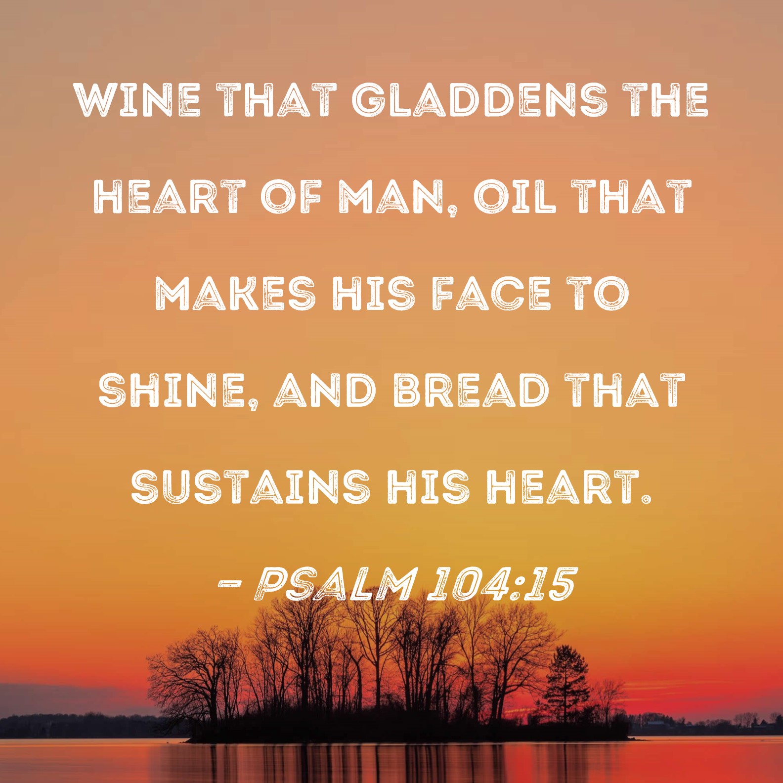 Psalm 104:15 wine that gladdens the heart of man, oil that makes his face to shine, and bread that sustains his heart.