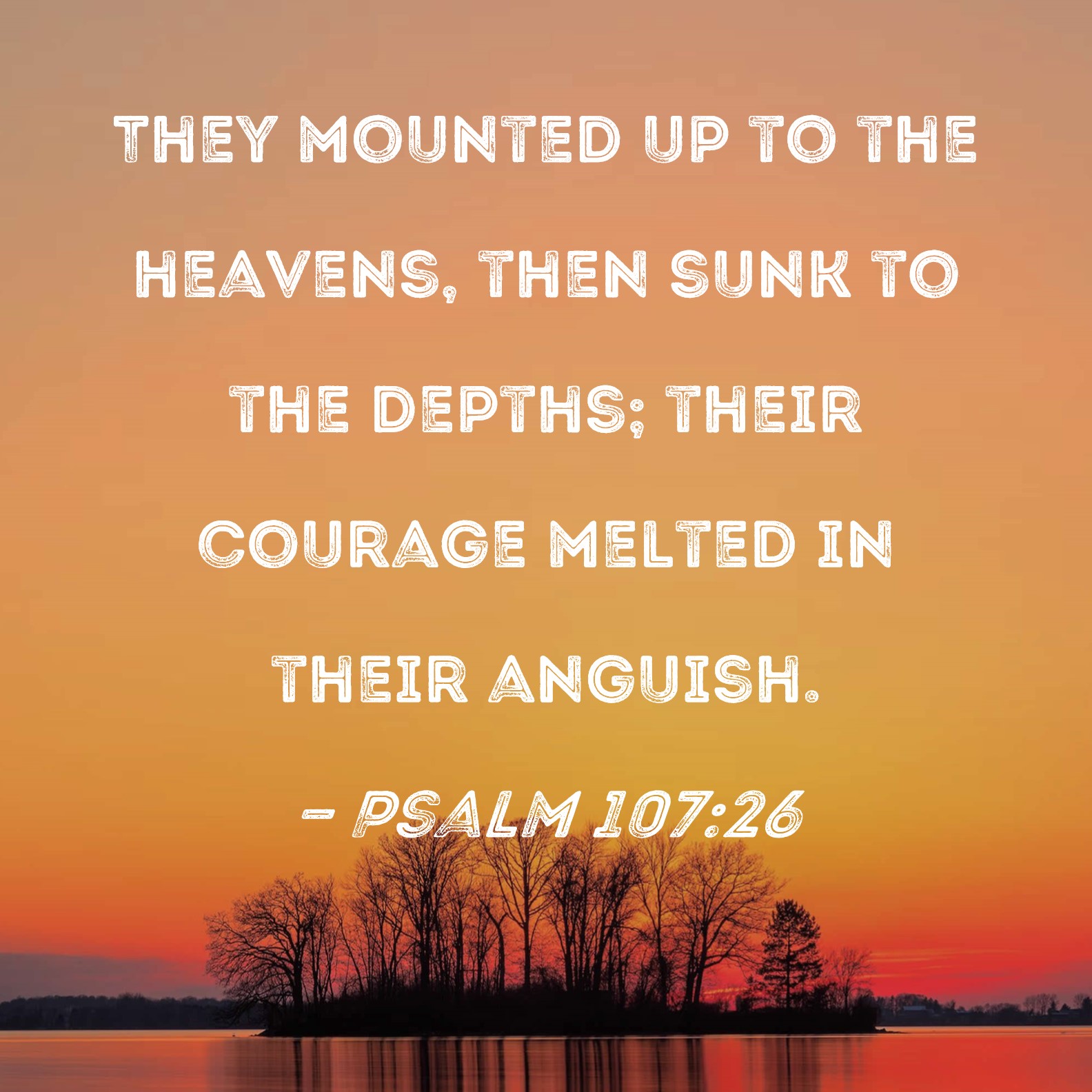 Psalm 107:26 They mounted up to the heavens, then sunk to the depths; their courage melted in their anguish.