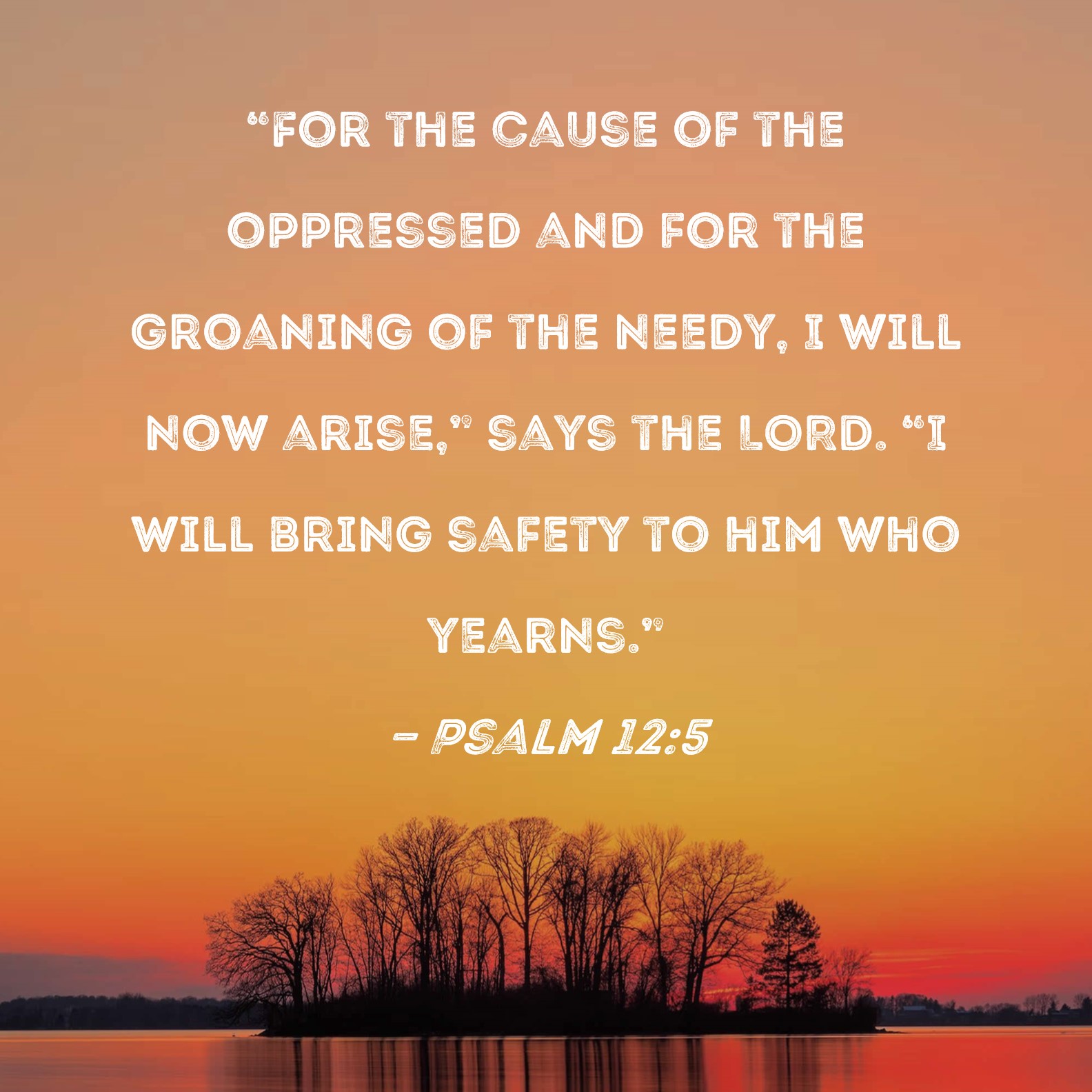 Psalm 12:5 "For the cause of the oppressed and for the groaning of the needy, I will now arise," says the LORD. "I will bring safety to him who yearns."