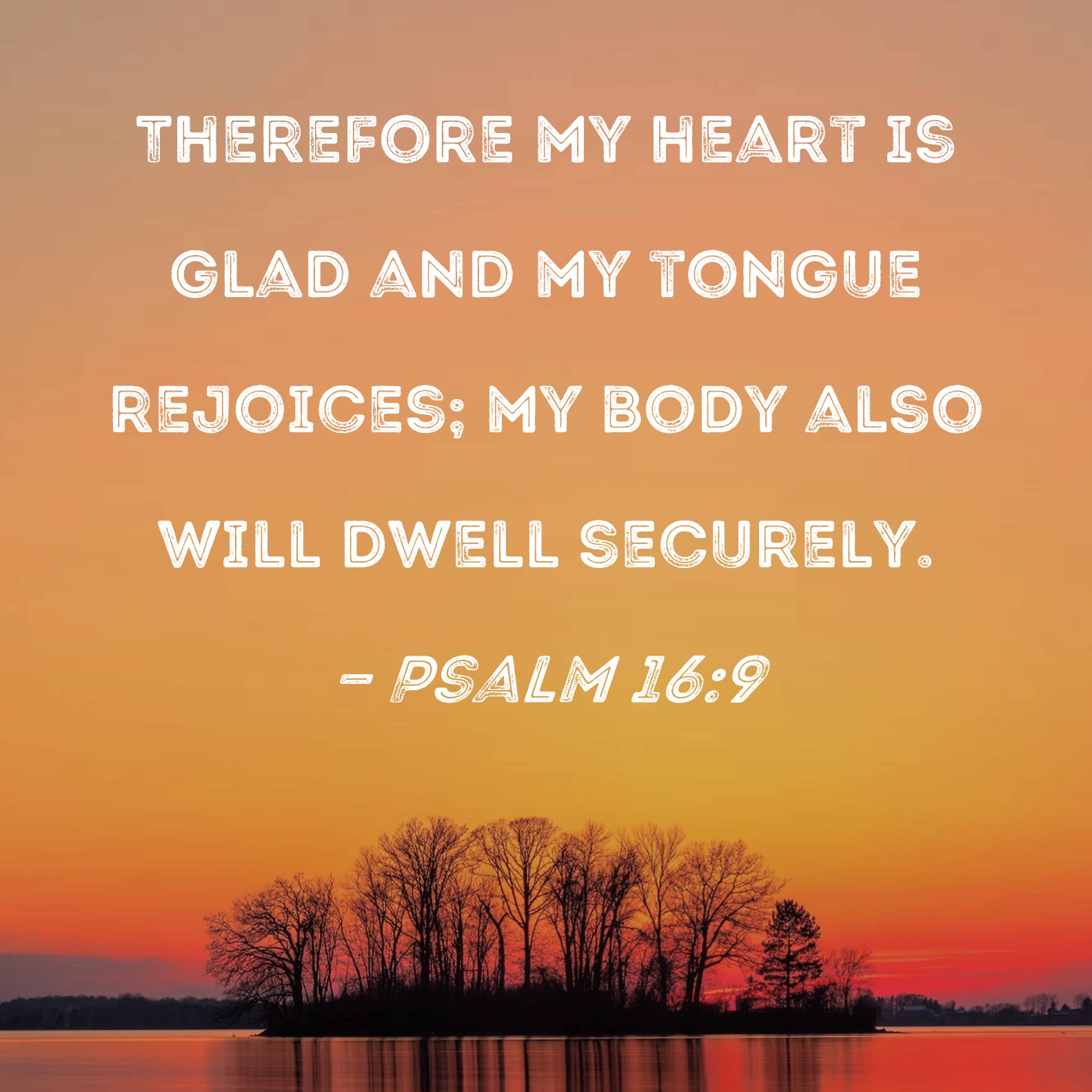 Psalm 16:9 Therefore my heart is glad and my tongue rejoices; my body also will dwell securely.