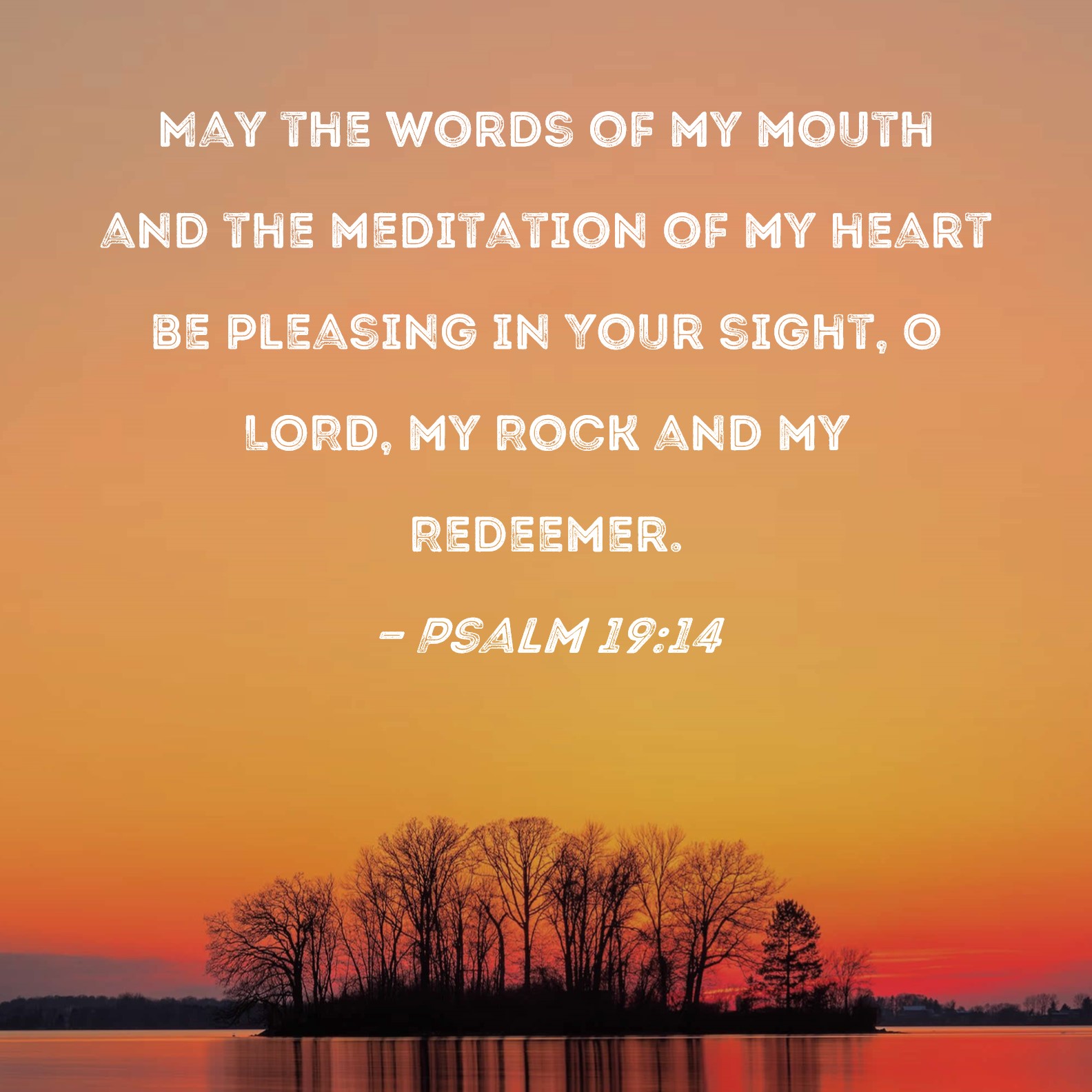 Psalm 19:14 May the words of my mouth and the meditation of my heart be pleasing in Your sight, O LORD, my Rock and my Redeemer.