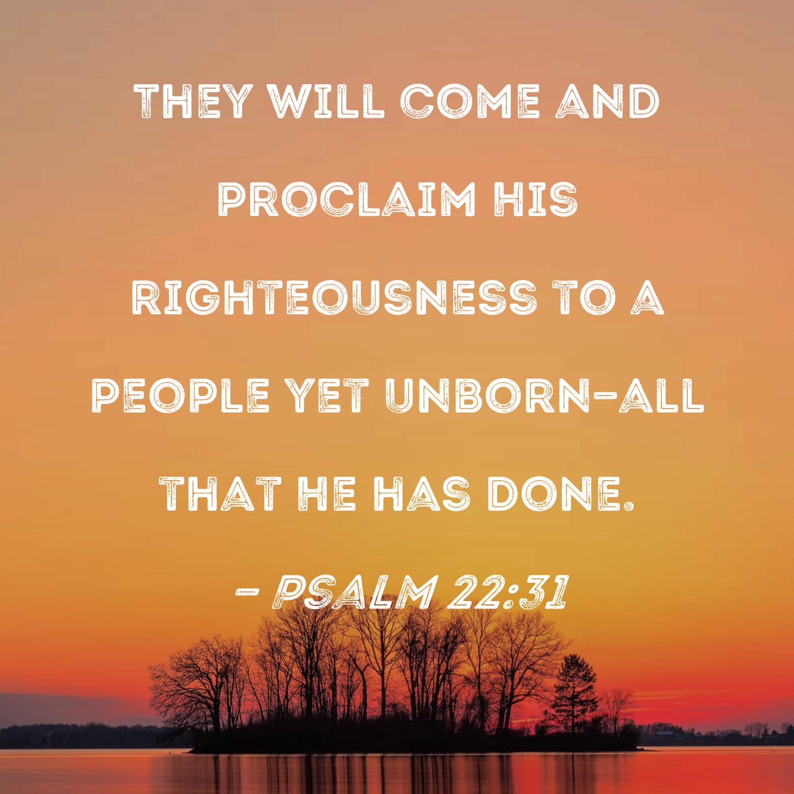 Psalm 22:31 They will come and proclaim His righteousness to a people yet unborn--all that He has done.