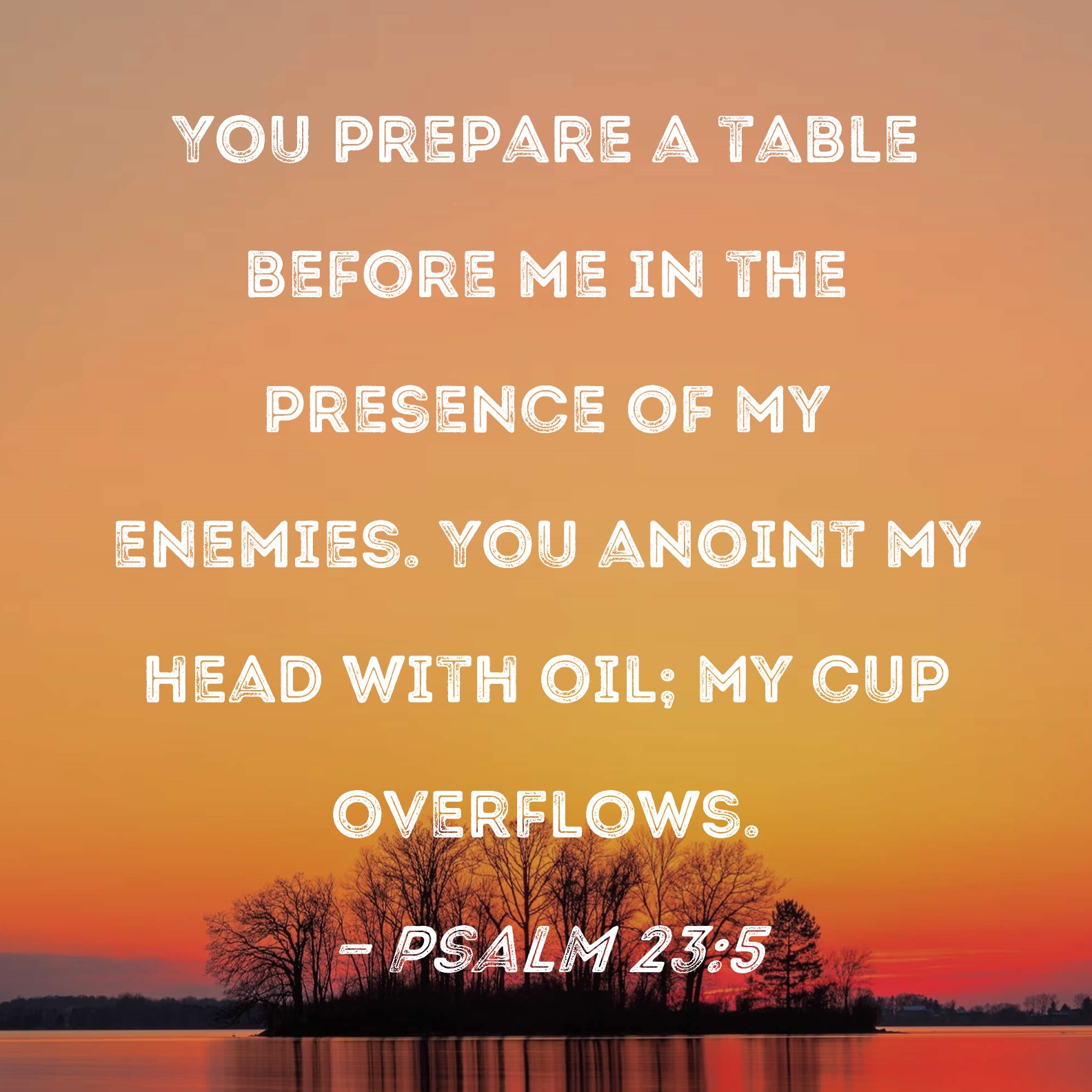 Psalm 23:5 You prepare a table before me in the presence of my enemies. You anoint my head with oil; my cup overflows.