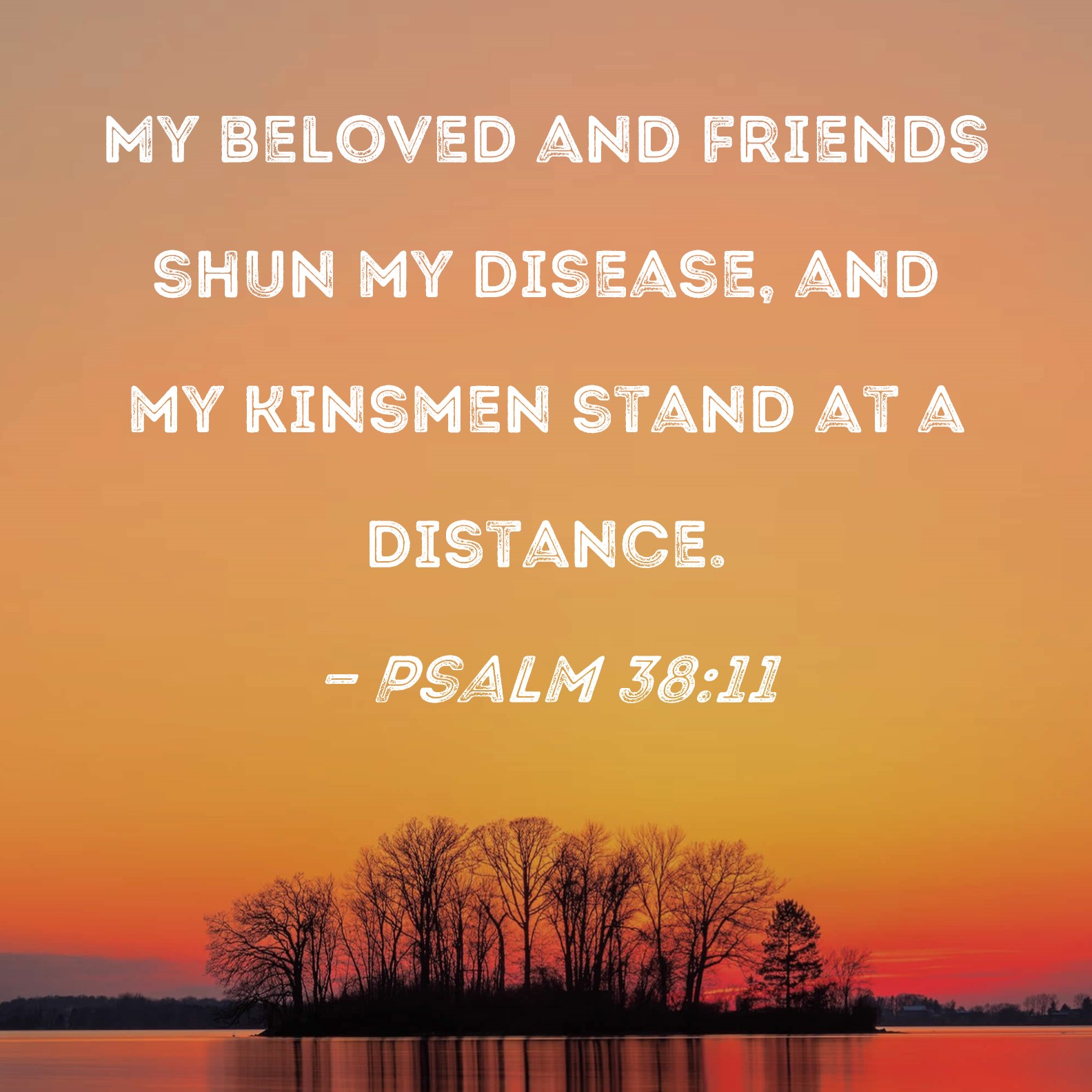 Psalm 38:11 My beloved and friends shun my disease, and my kinsmen stand at a distance.