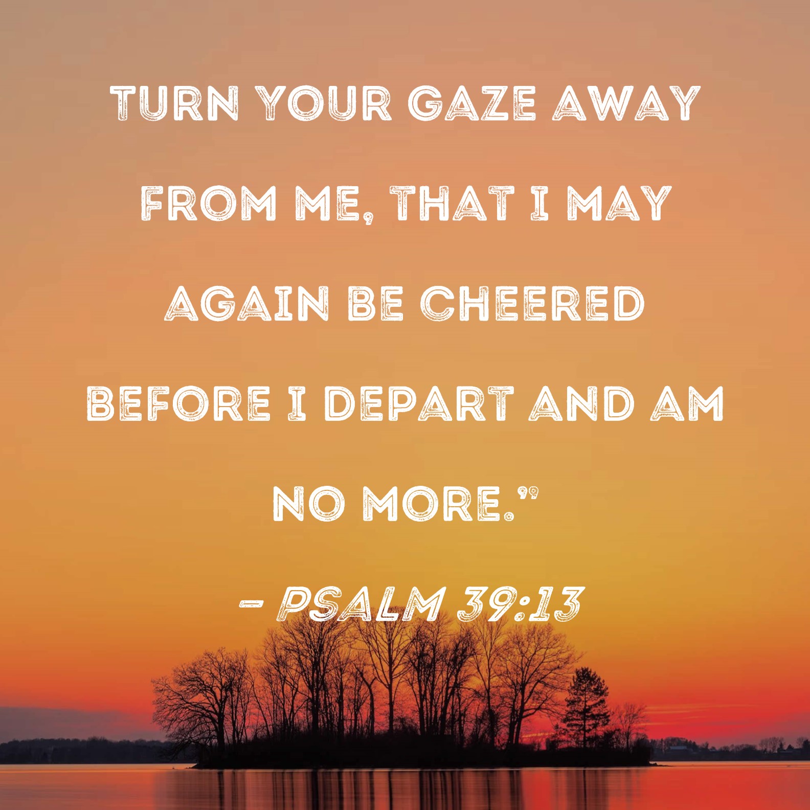 Psalm 39:13 Turn Your gaze away from me, that I may again be cheered before I depart and am no more."