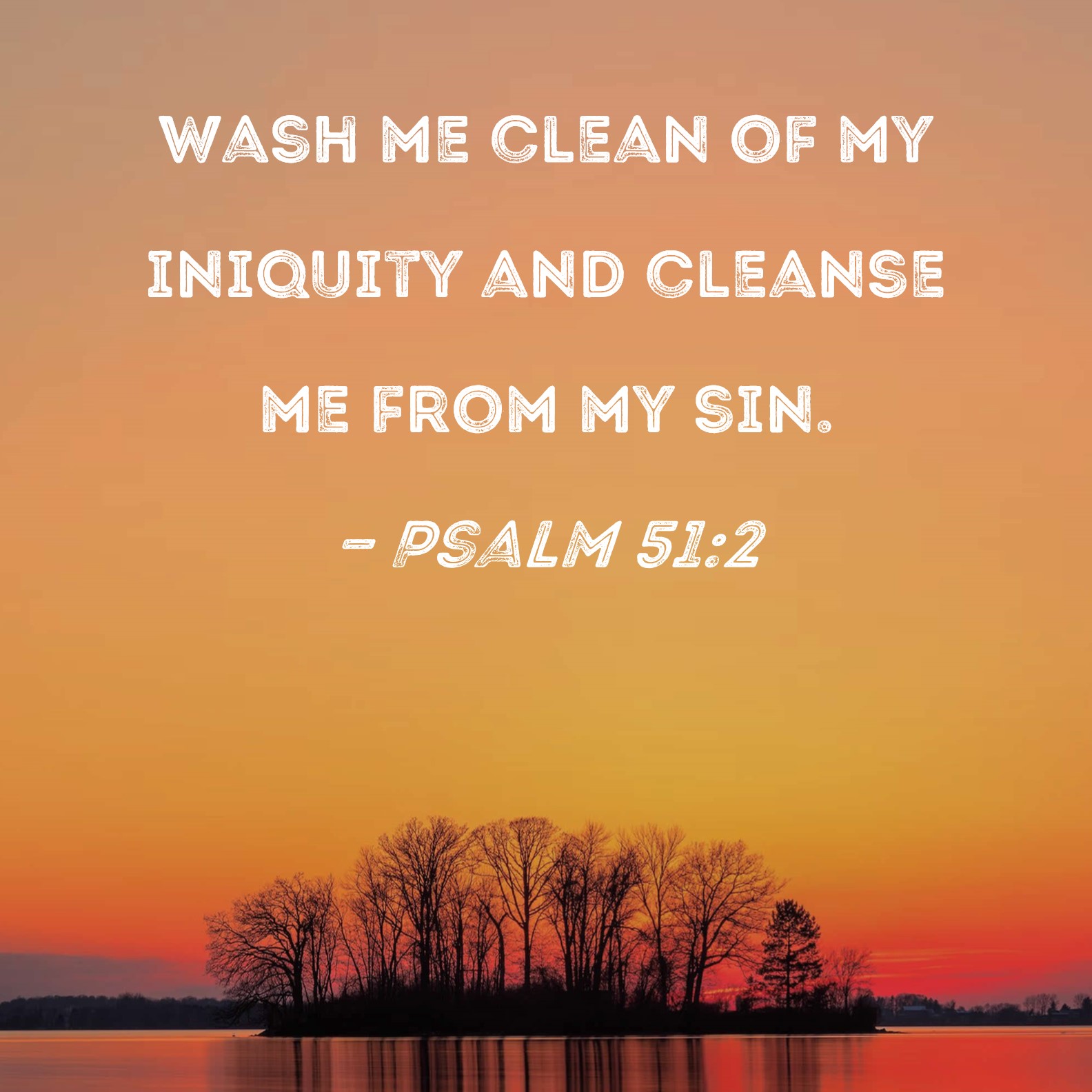 Psalm 51:2 Wash me clean of my iniquity and cleanse me from my sin.