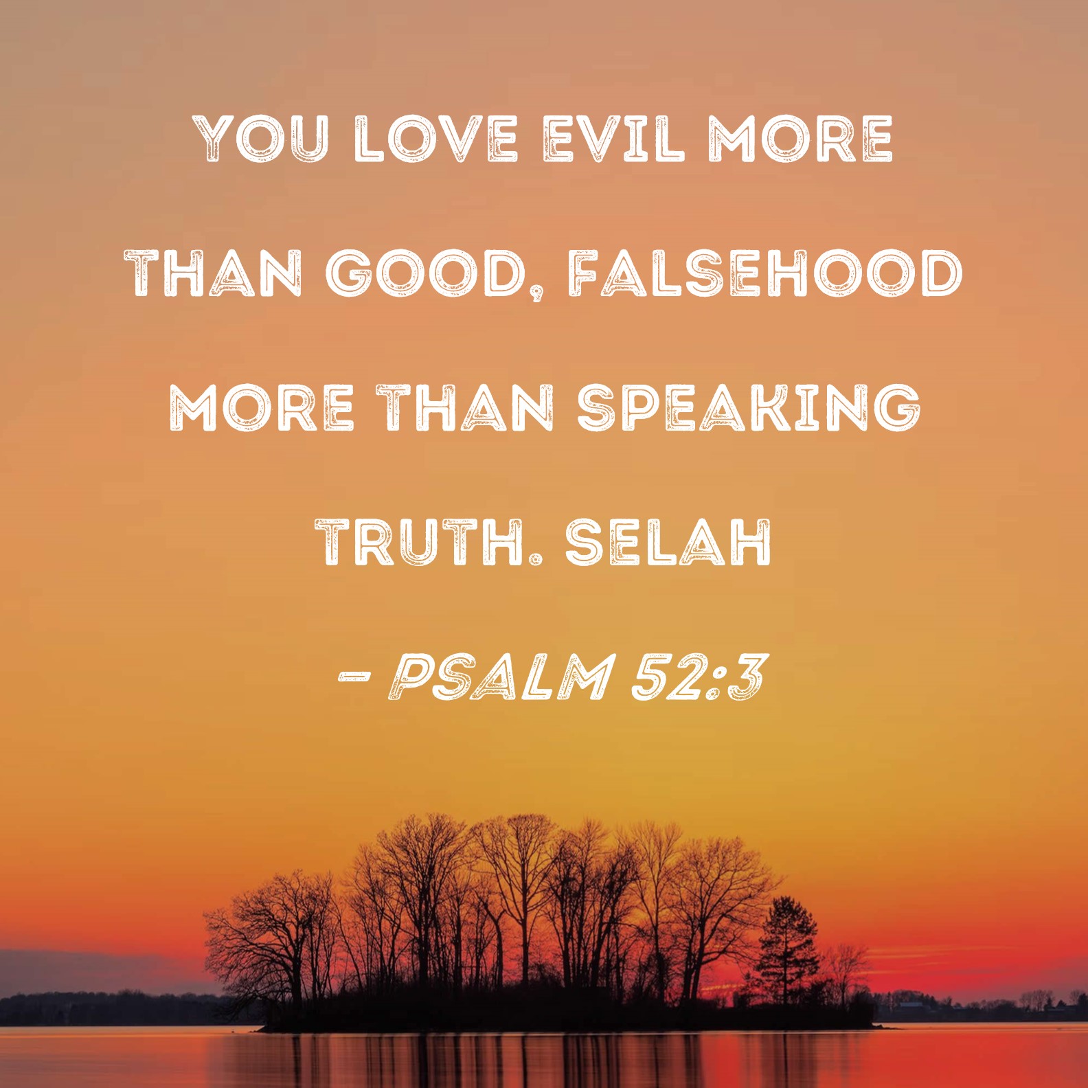 Psalm 52:3 You love evil more than good, falsehood more than speaking truth. Selah