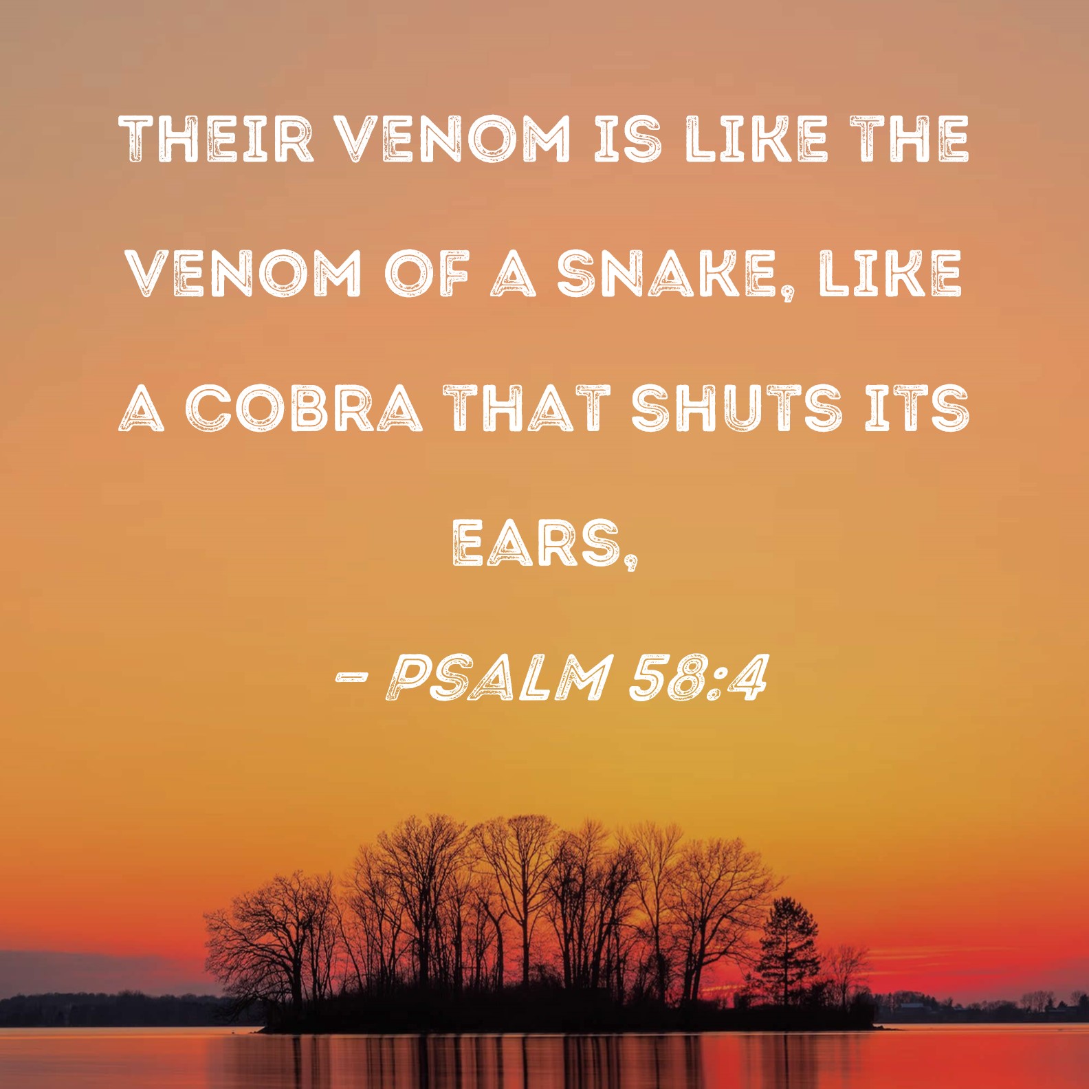 Psalm 58:4 Their venom is like the venom of a snake, like a cobra that shuts its ears,